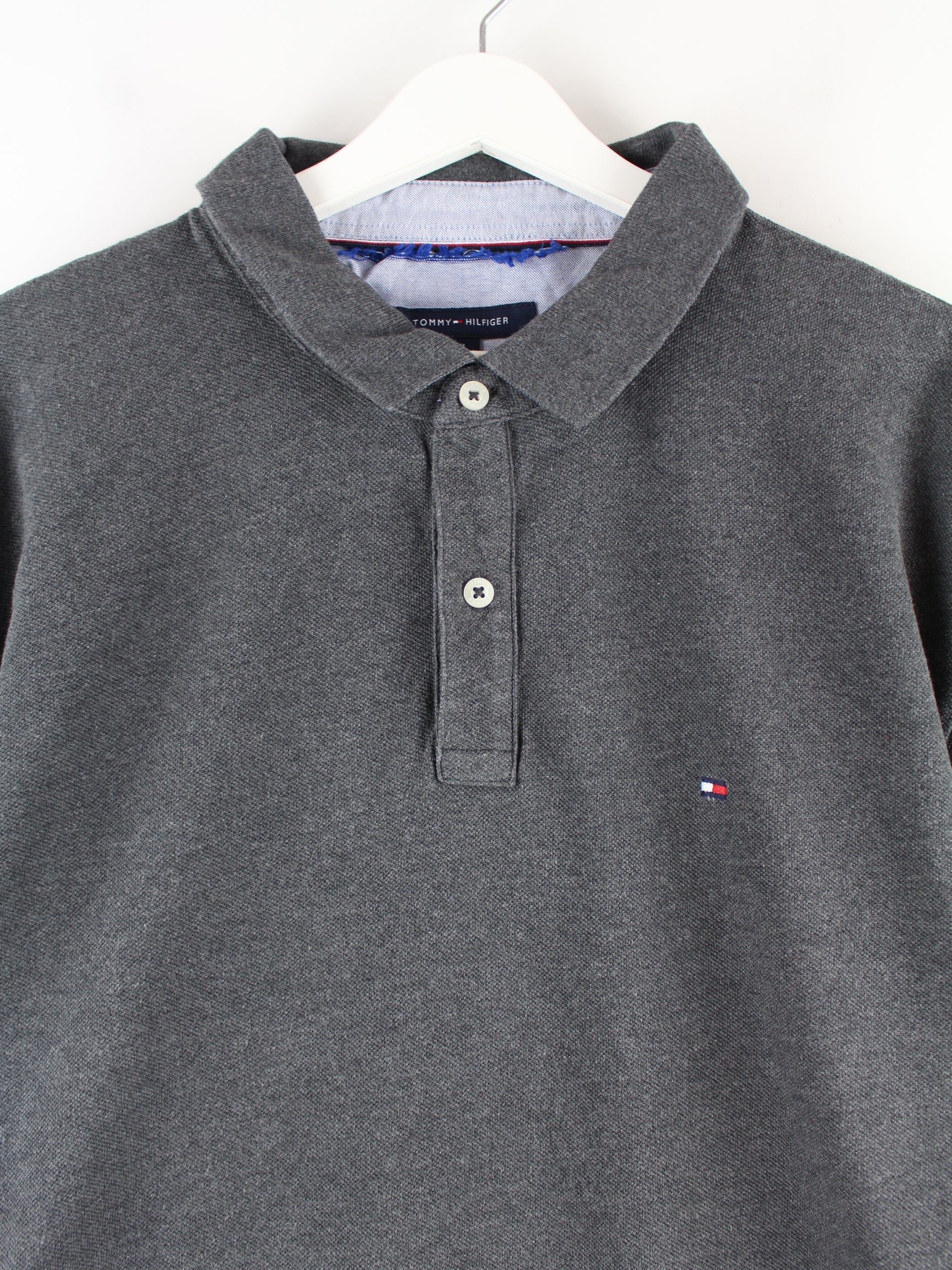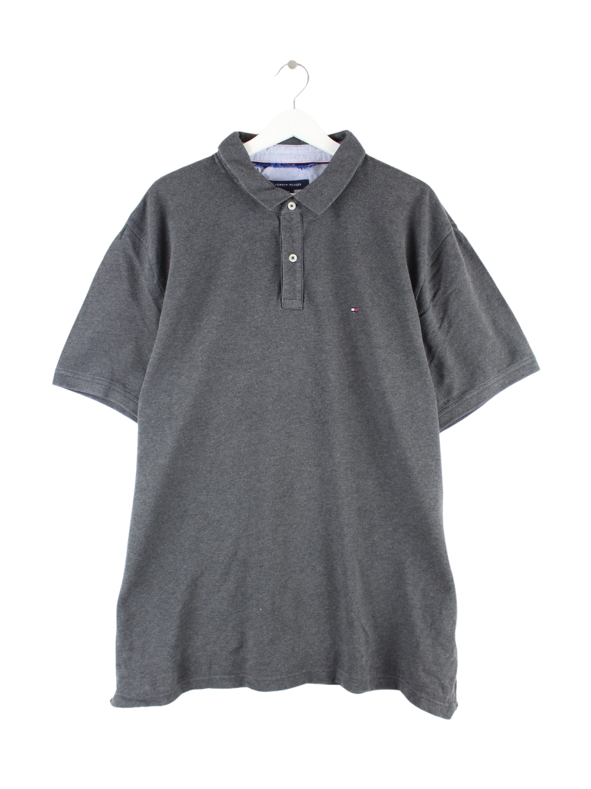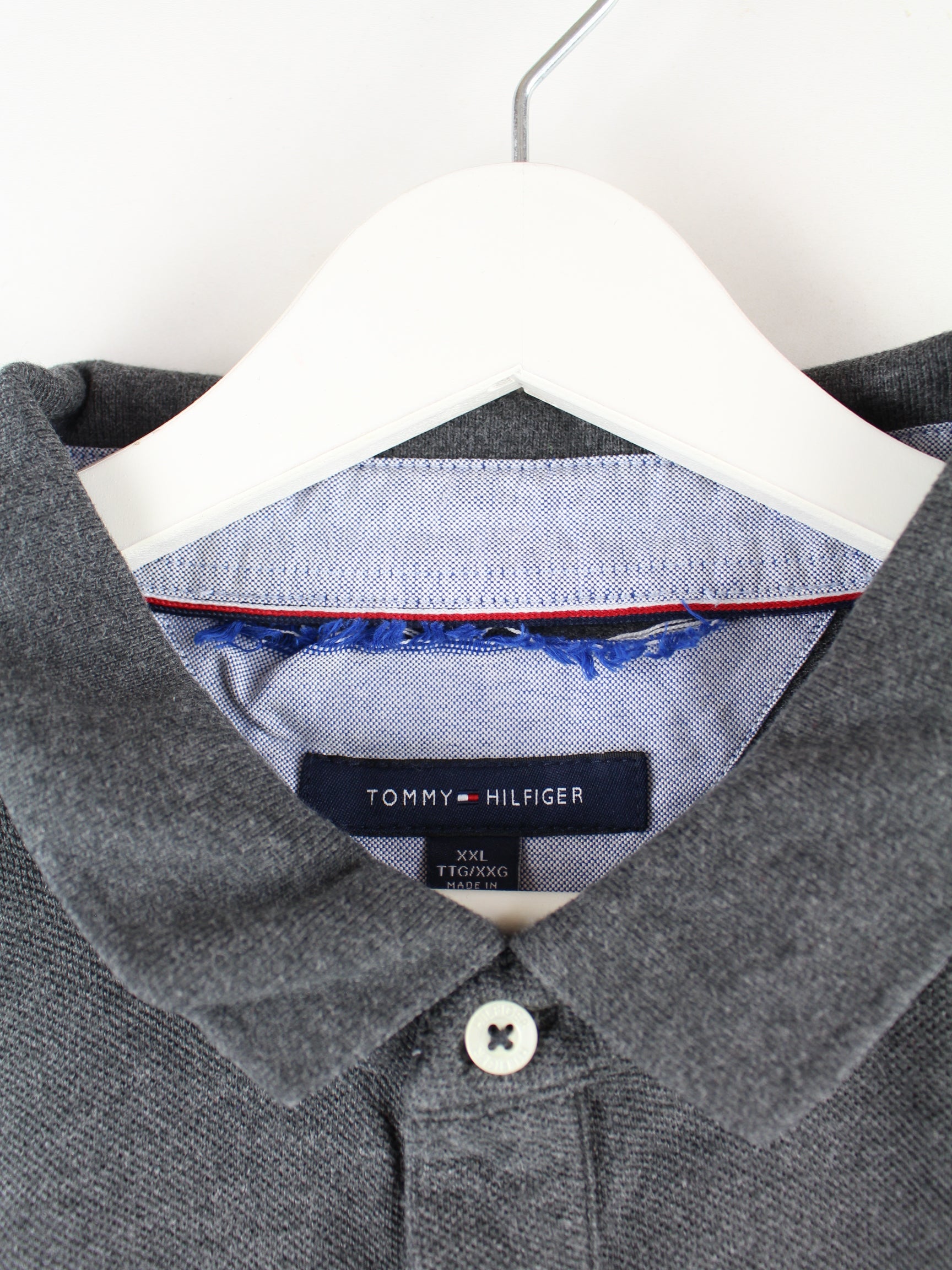 Graues Poloshirt vom Brand Tommy Hilfiger in Größe XXL. Es ist aus Baumwolle gefertigt und in gutem Zustand vorrätig.