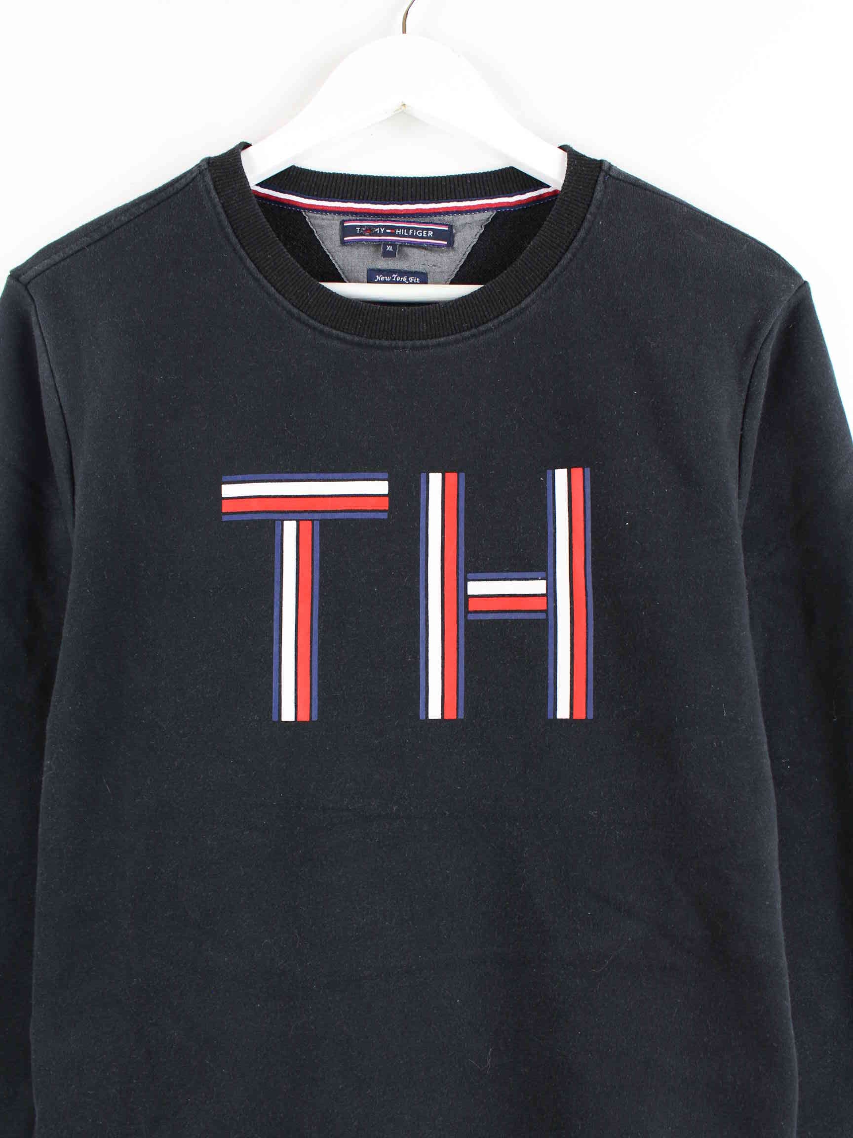 Schwarzer Sweater vom Label Tommy Hilfiger in Größe S. Er ist aus einer Baumwollmischung hergestellt und in gutem Zustand zu haben. Mit chiquem Print.