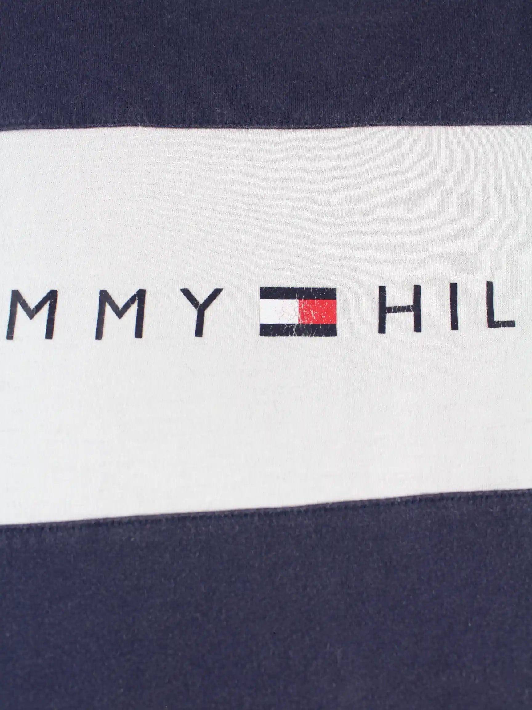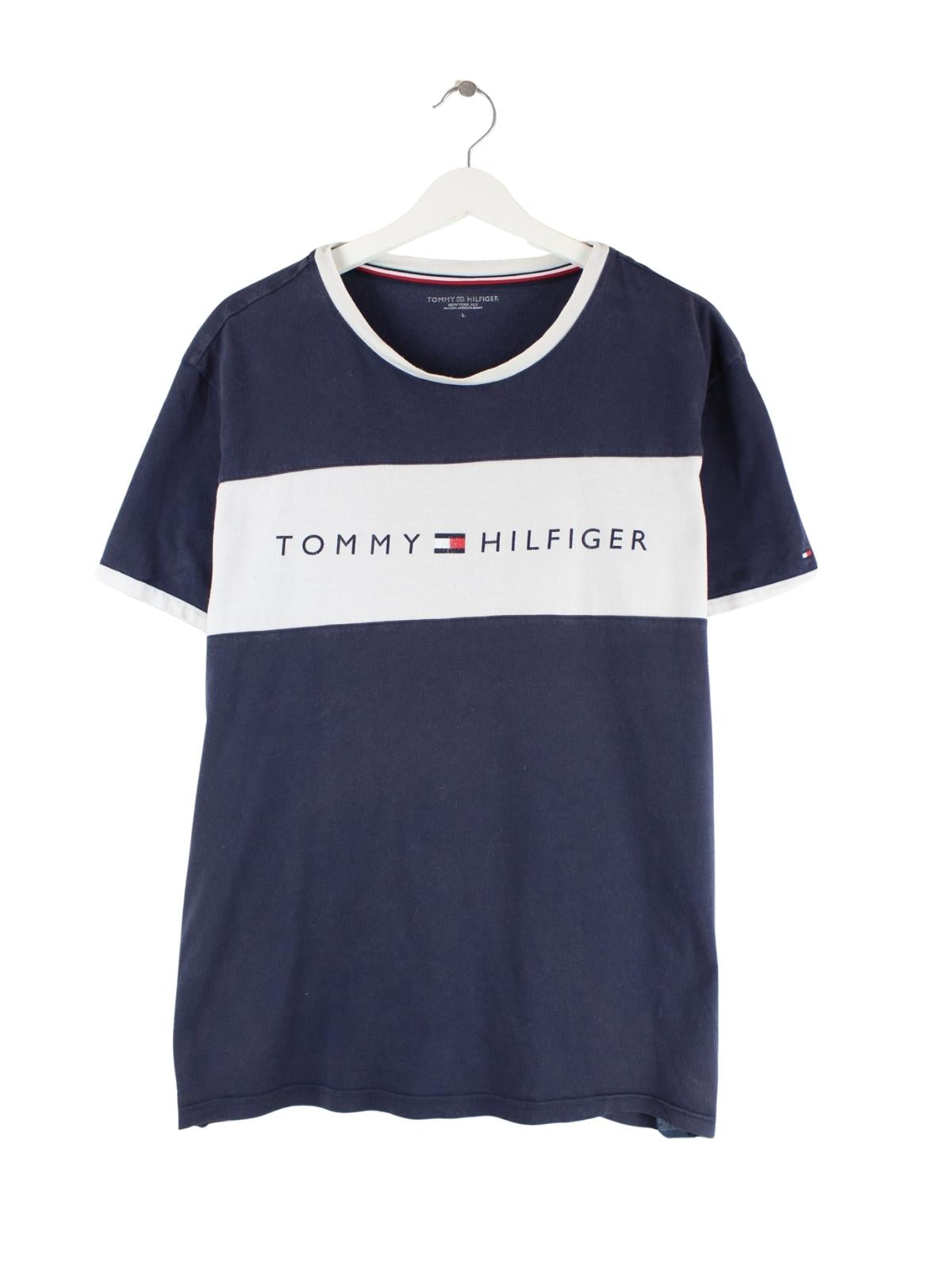 Blaues T-Shirt des Labels Tommy Hilfiger in Größe L. Es ist aus Baumwolle hergestellt und in gutem Zustand vorrätig. Mit schönem Print.