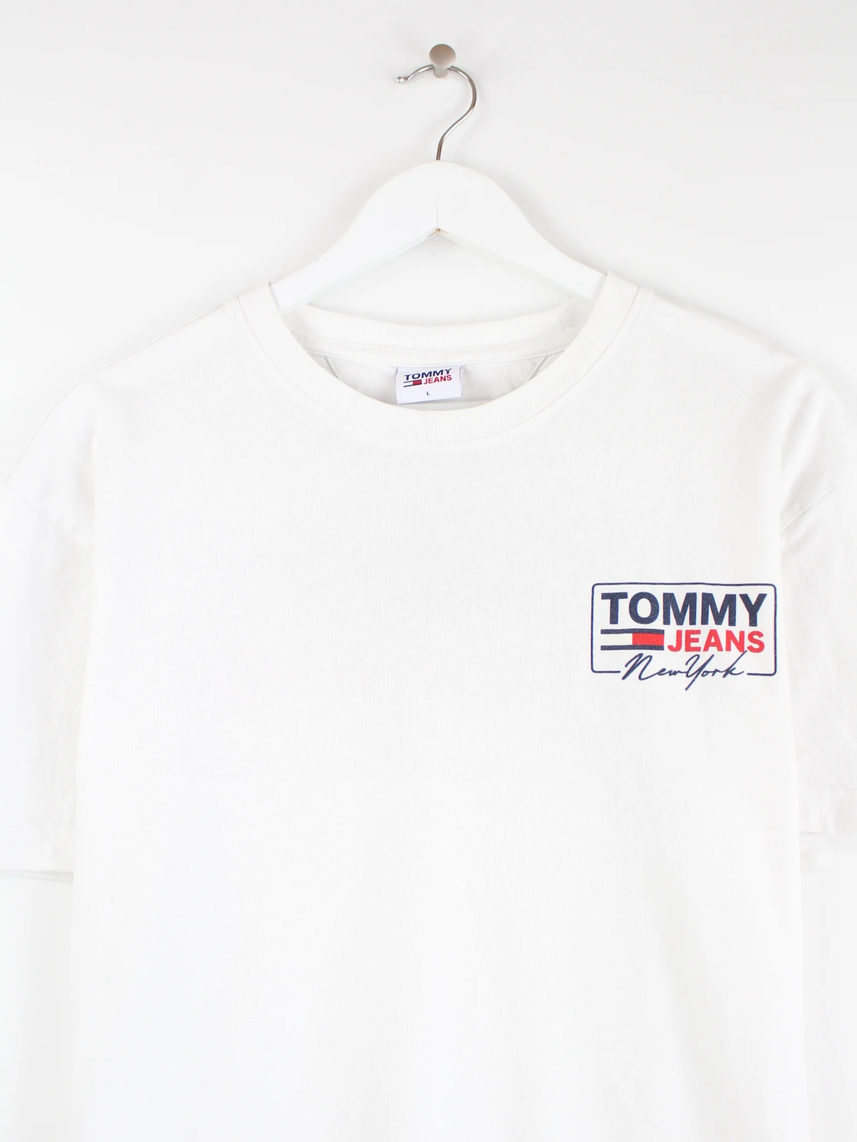 T-Shirt aus dem Hause Tommy Hilfiger in Größe L. Es ist aus Baumwolle produziert und in Weiß bei uns vorrätig. Mit tollem Print.