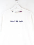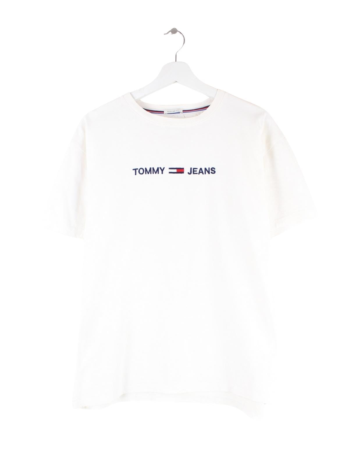 Weißes T-Shirt des Labels Tommy Hilfiger in Größe M. Es ist aus Baumwolle und in sehr gutem Zustand lieferbar.