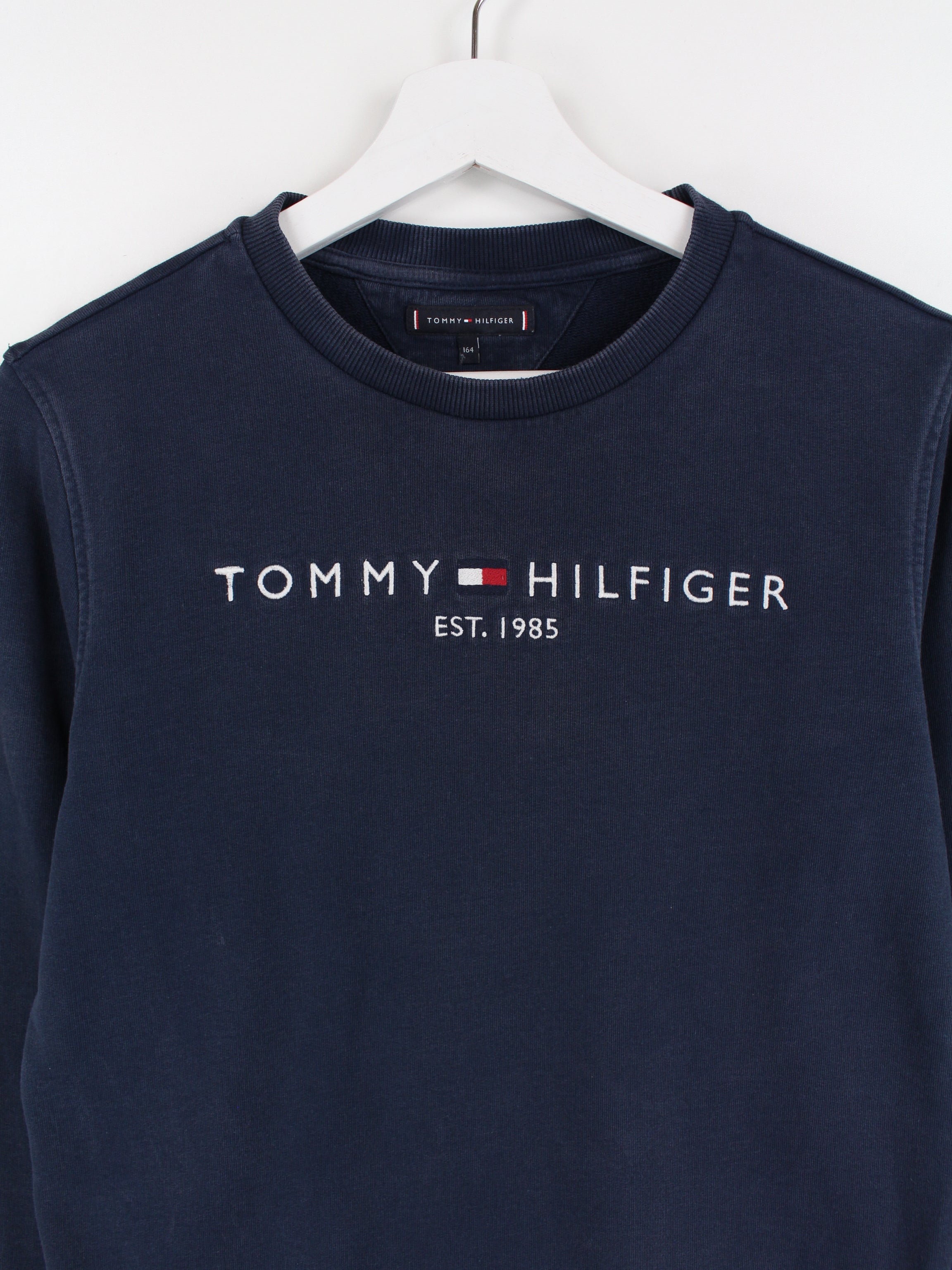 Blauer Tommy Hilfiger Sweater mit aufgesticktem Logo.