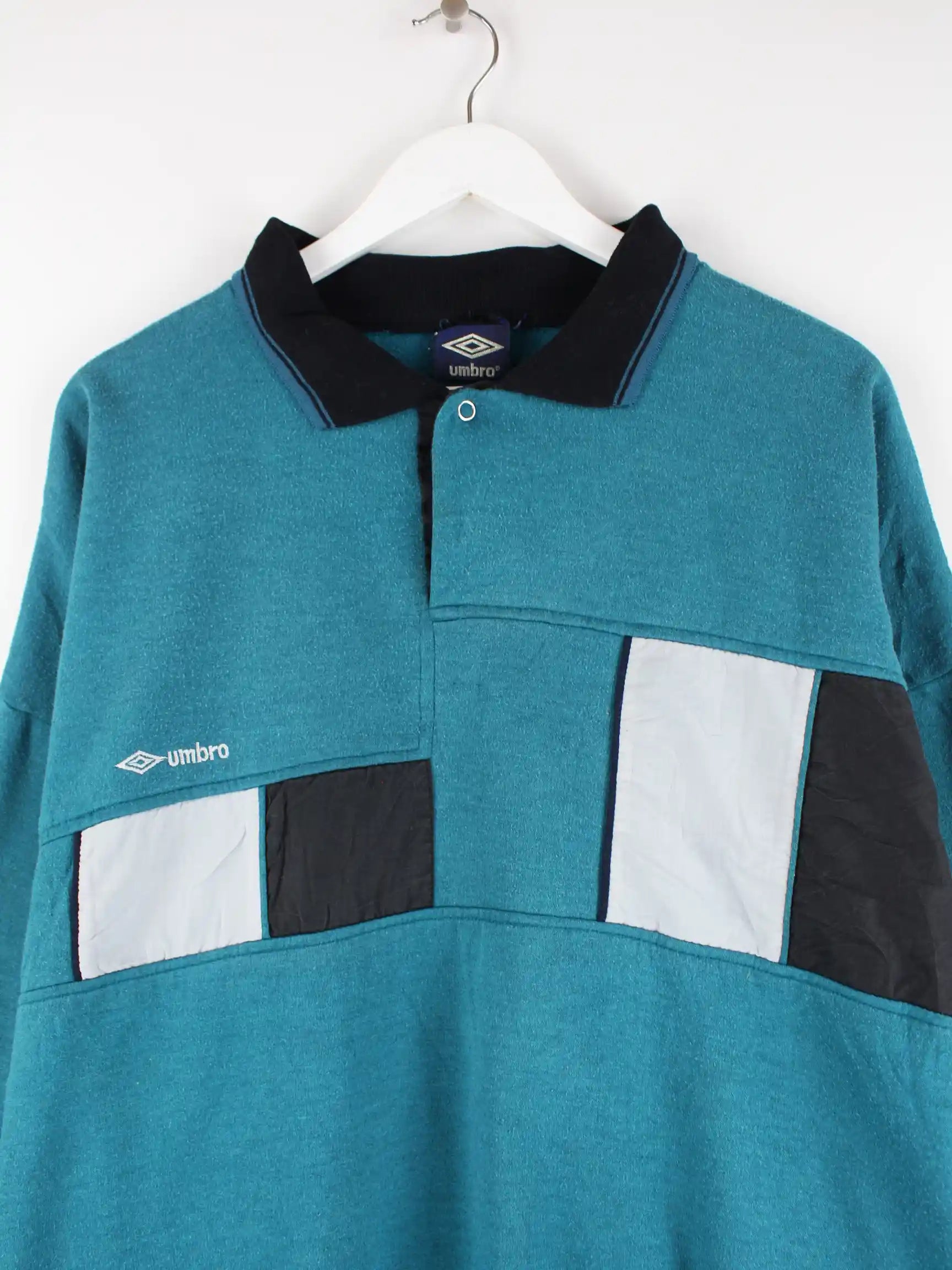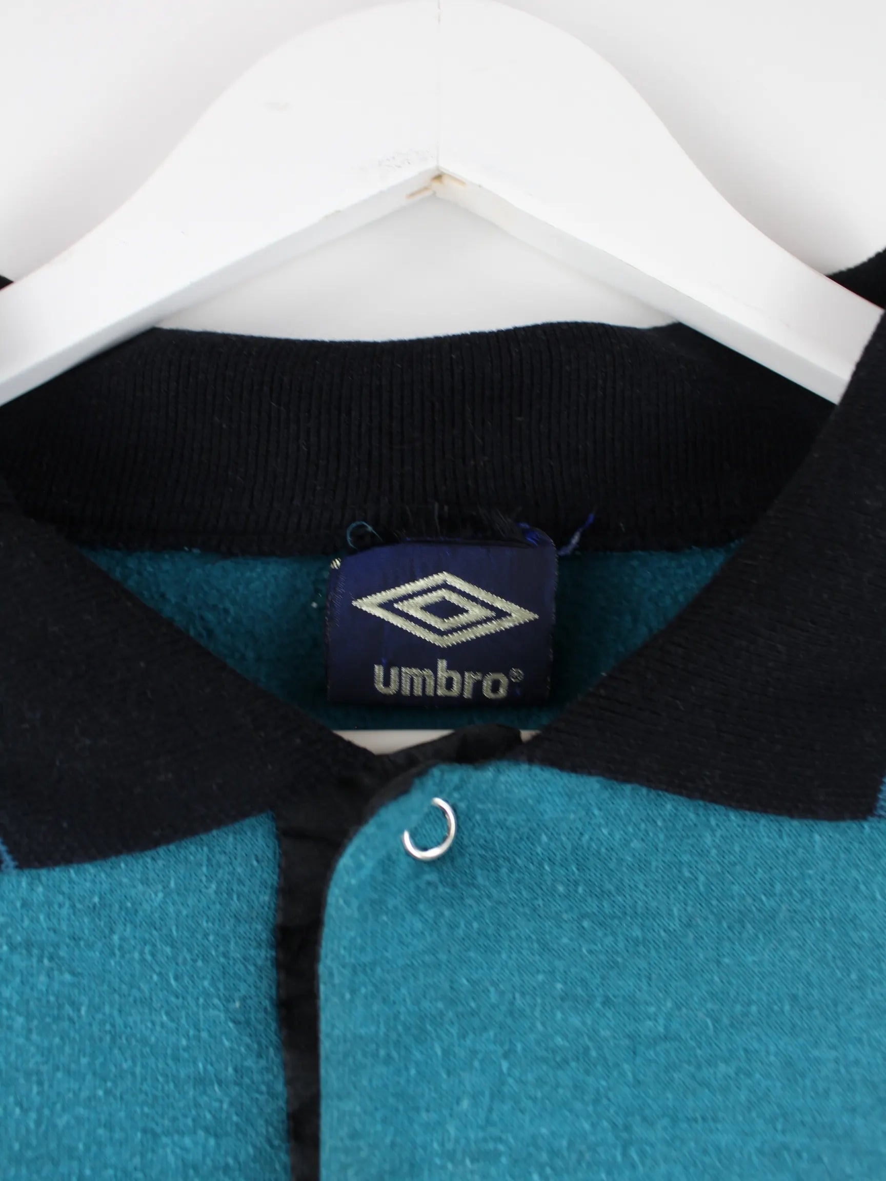 Blau farbener Sweater von Umbro aus den 90'ern in Größe M. Er ist aus einer Baumwollmischung angefertigt und in gutem Zustand zu bekommen.