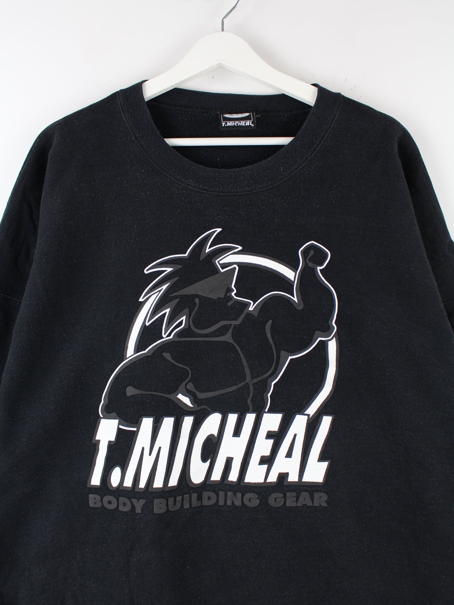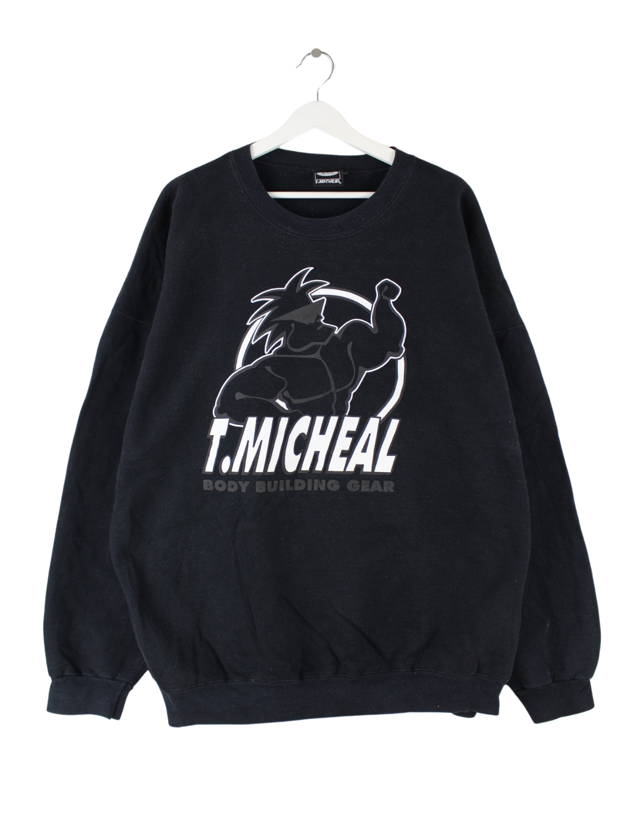 Vintage 90s T. Michael Bodybuilding Print Heavy Sweater Schwarz XXL