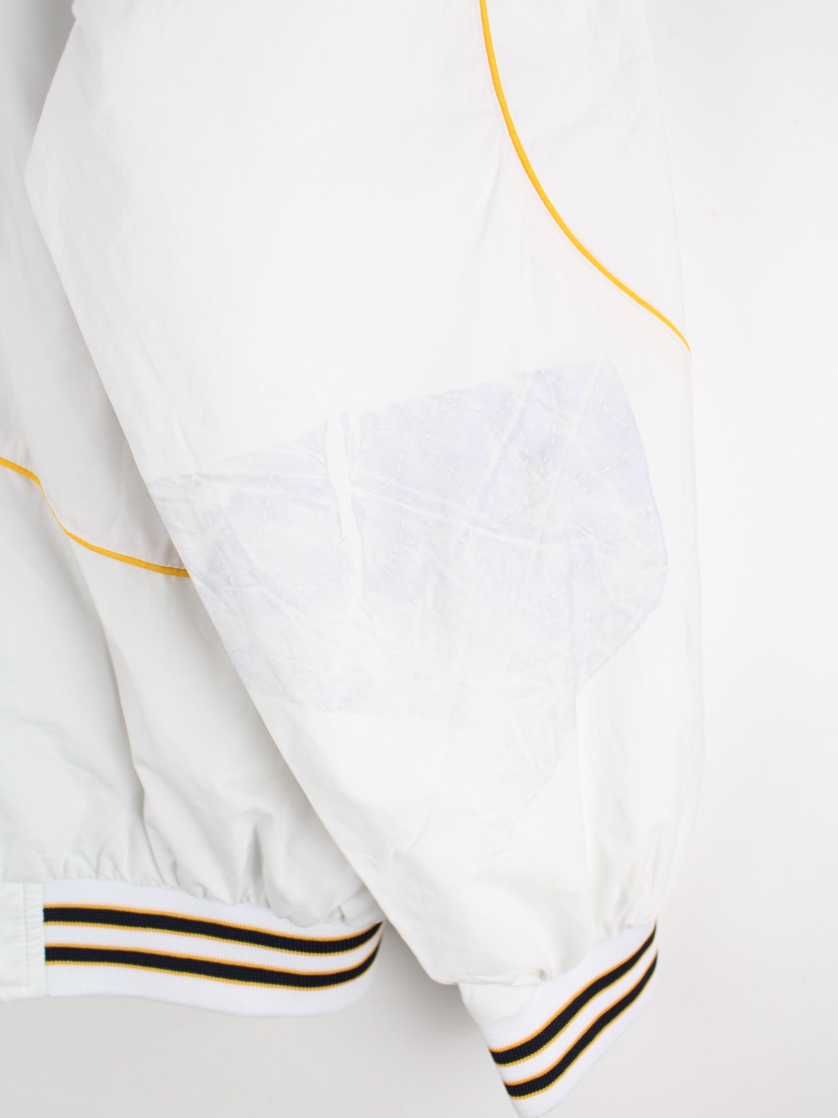 Vintage Trainingsjacke mit Stickereien in Größe XXL. Sie ist aus Synthetik gemacht und in Weiß bei uns vorrätig.