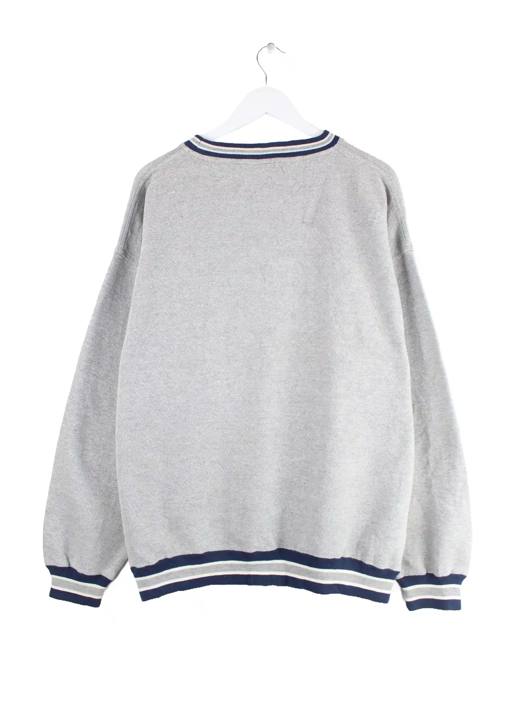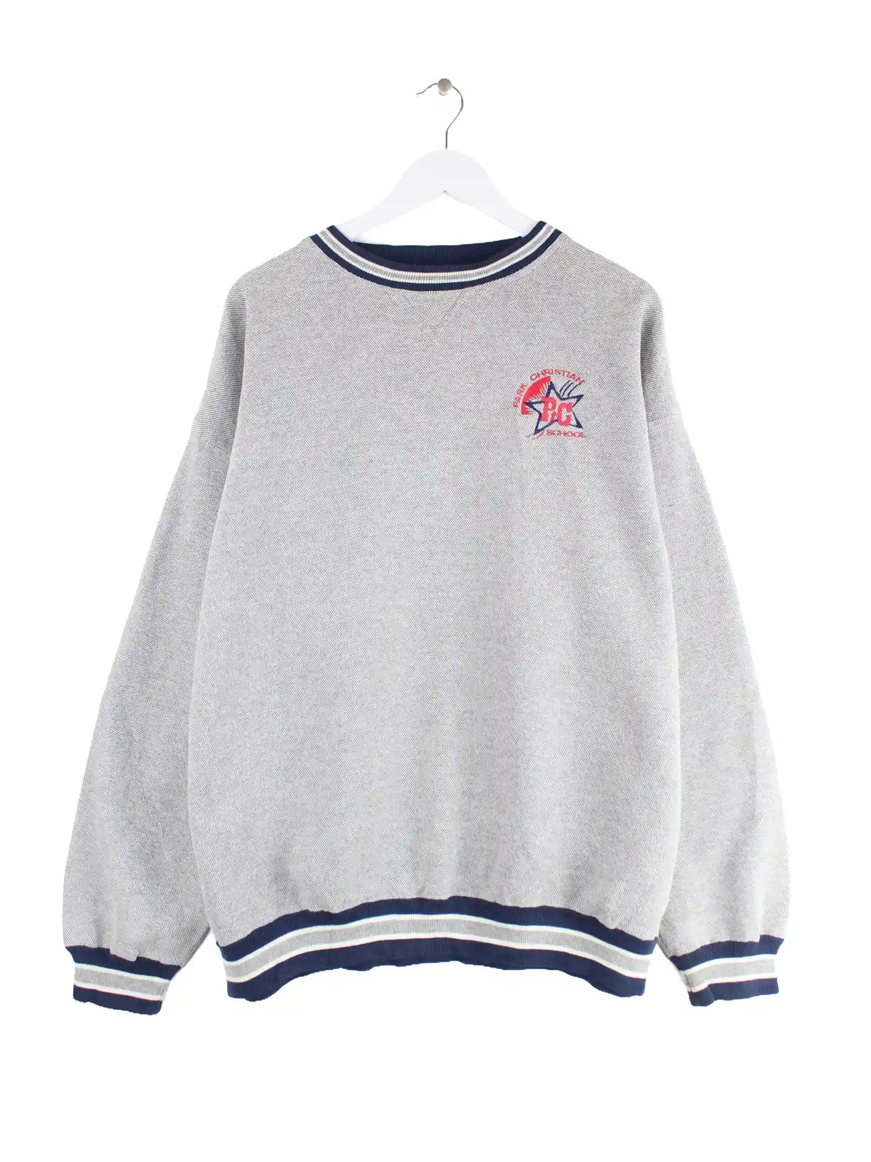 Vintage Sweater in Größe XL. Er ist aus einer Baumwollmischung produziert und in Grau vorrätig.