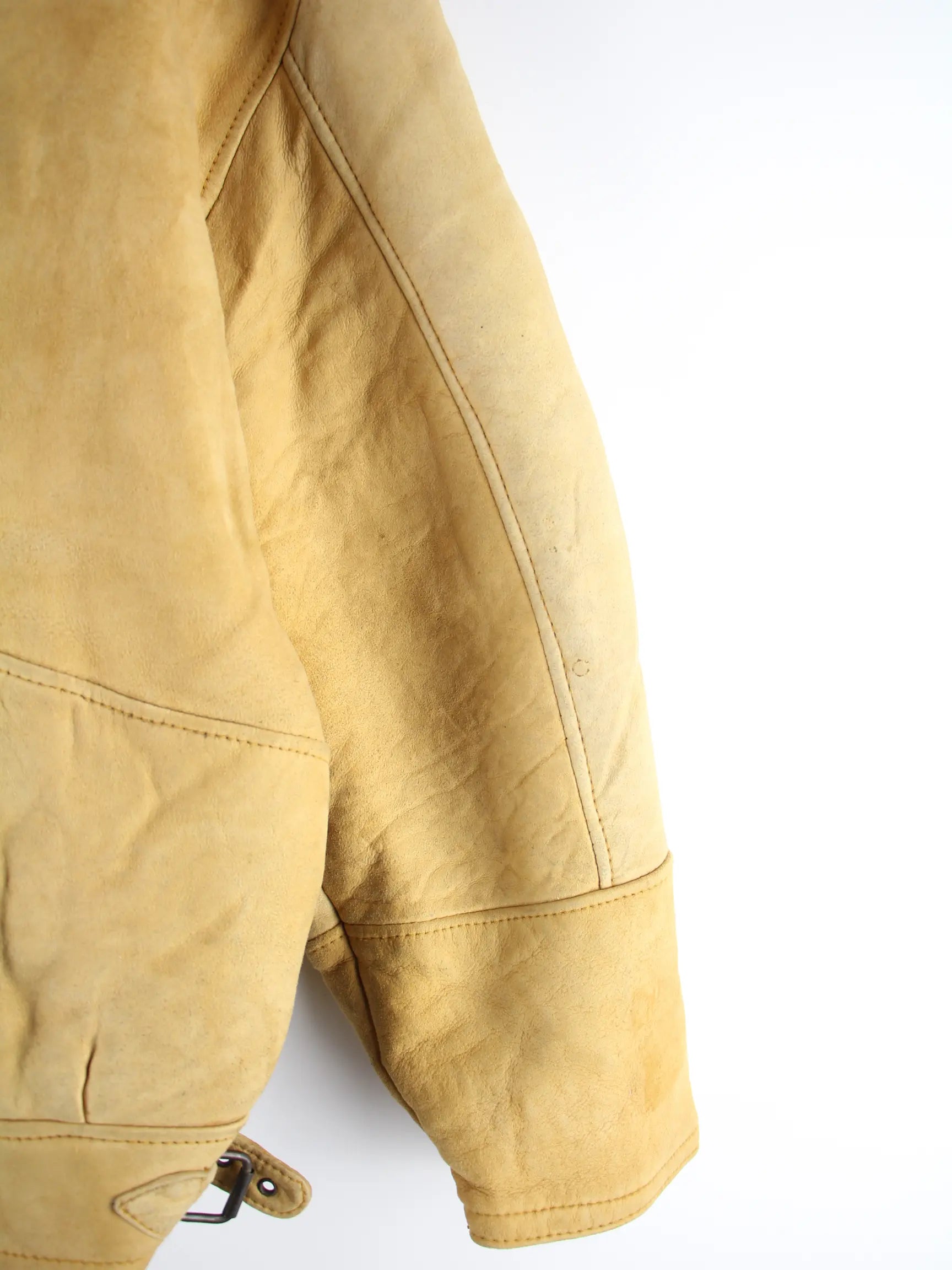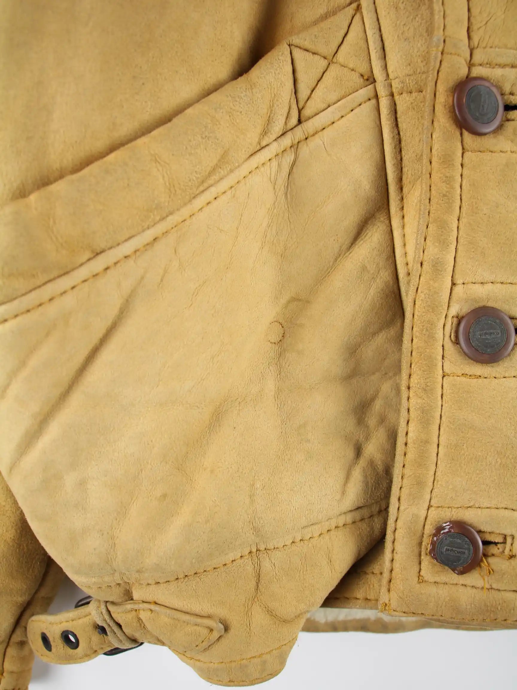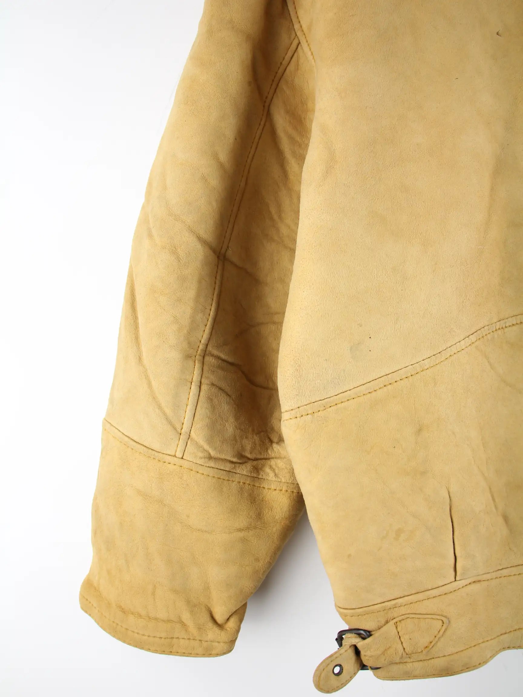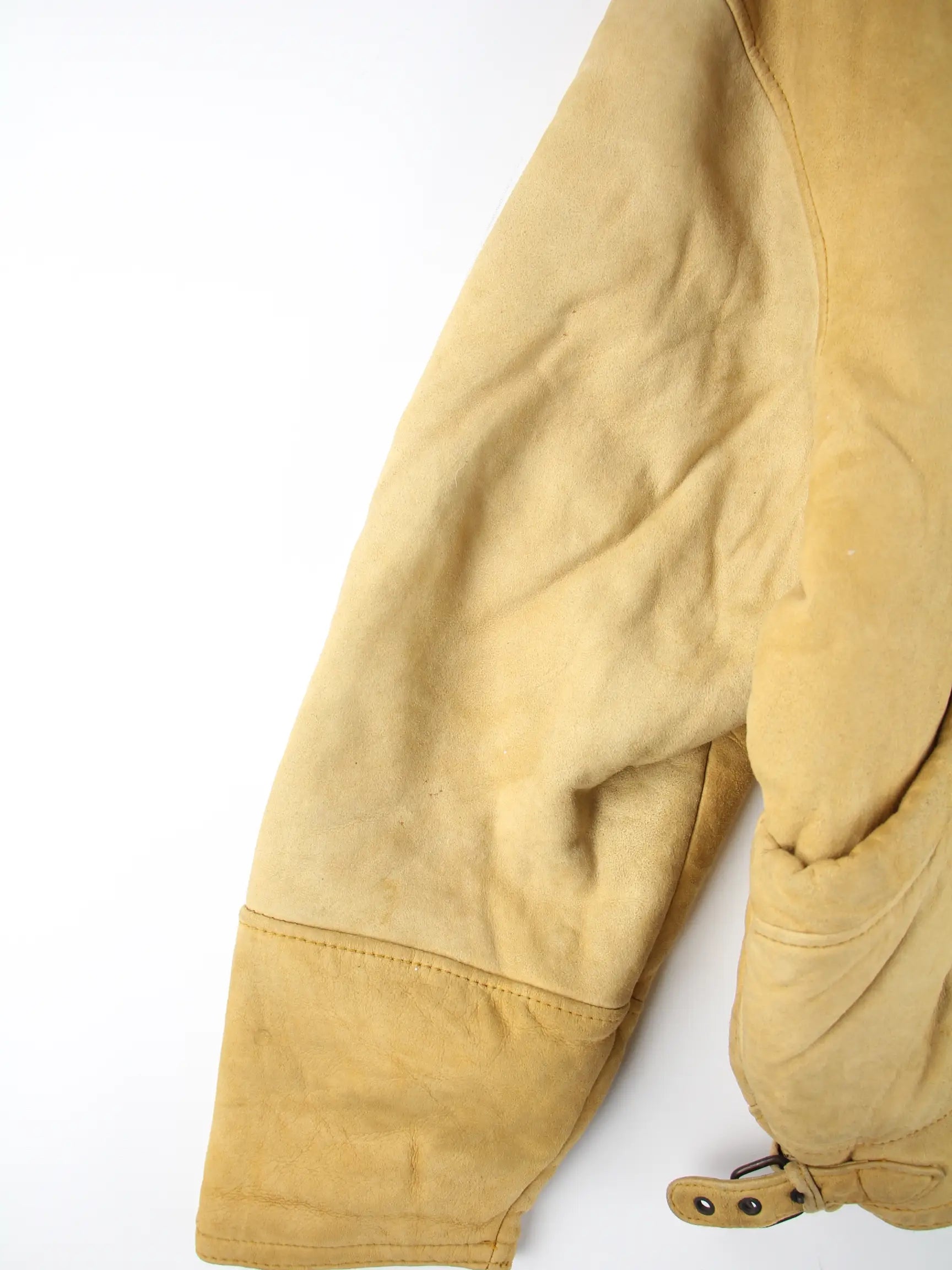 Braune Vintage Jacke in Größe M. Sie ist aus Leder gefertigt. Den Zustand würden wir als 'In Ordnung' bezeichnen (vergl. Bilder).