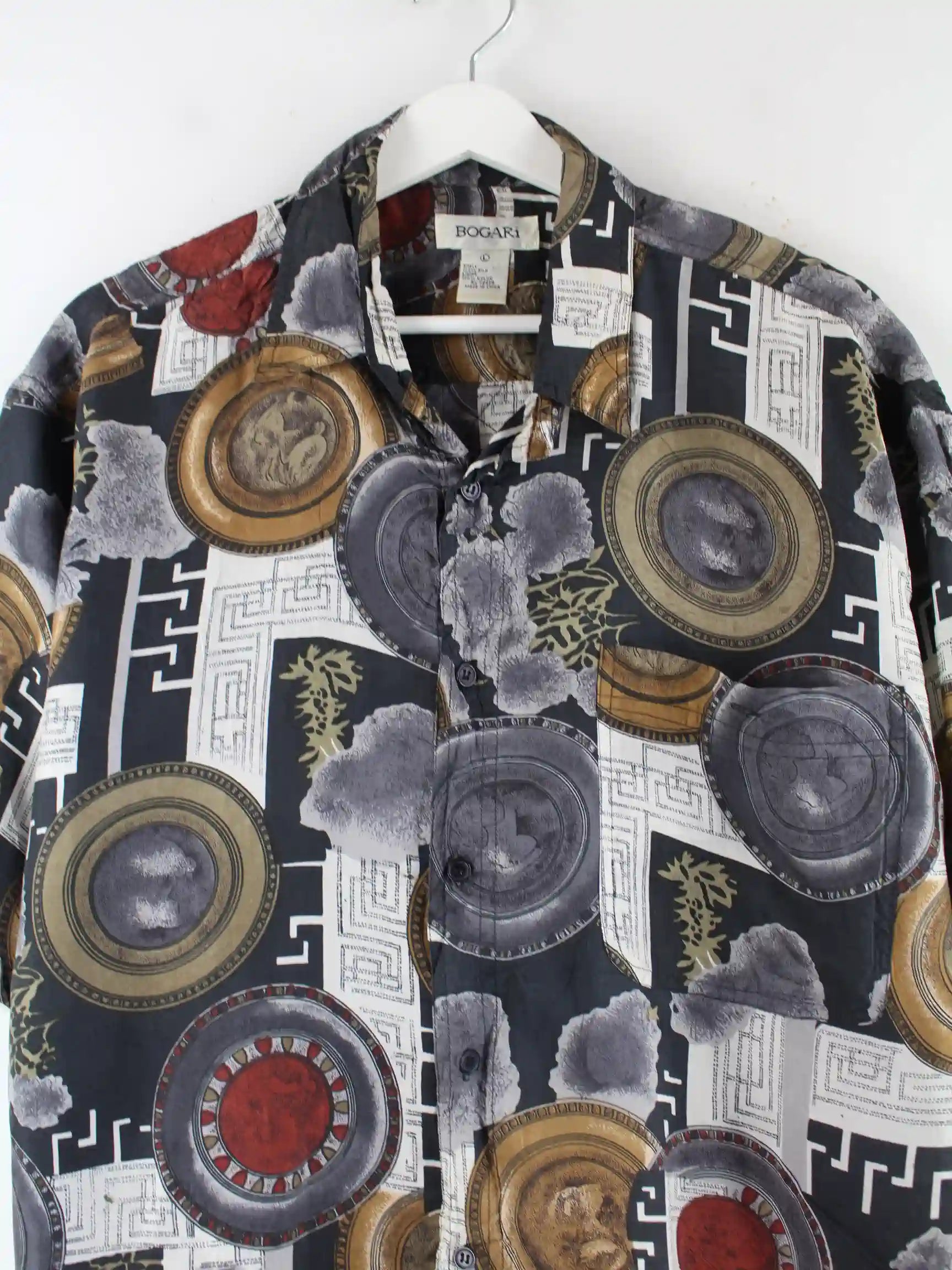 Graues Vintage Freizeit Hemd in Größe L. Es ist aus Seide gemacht und in sehr gutem Zustand bei uns vorrätig.
