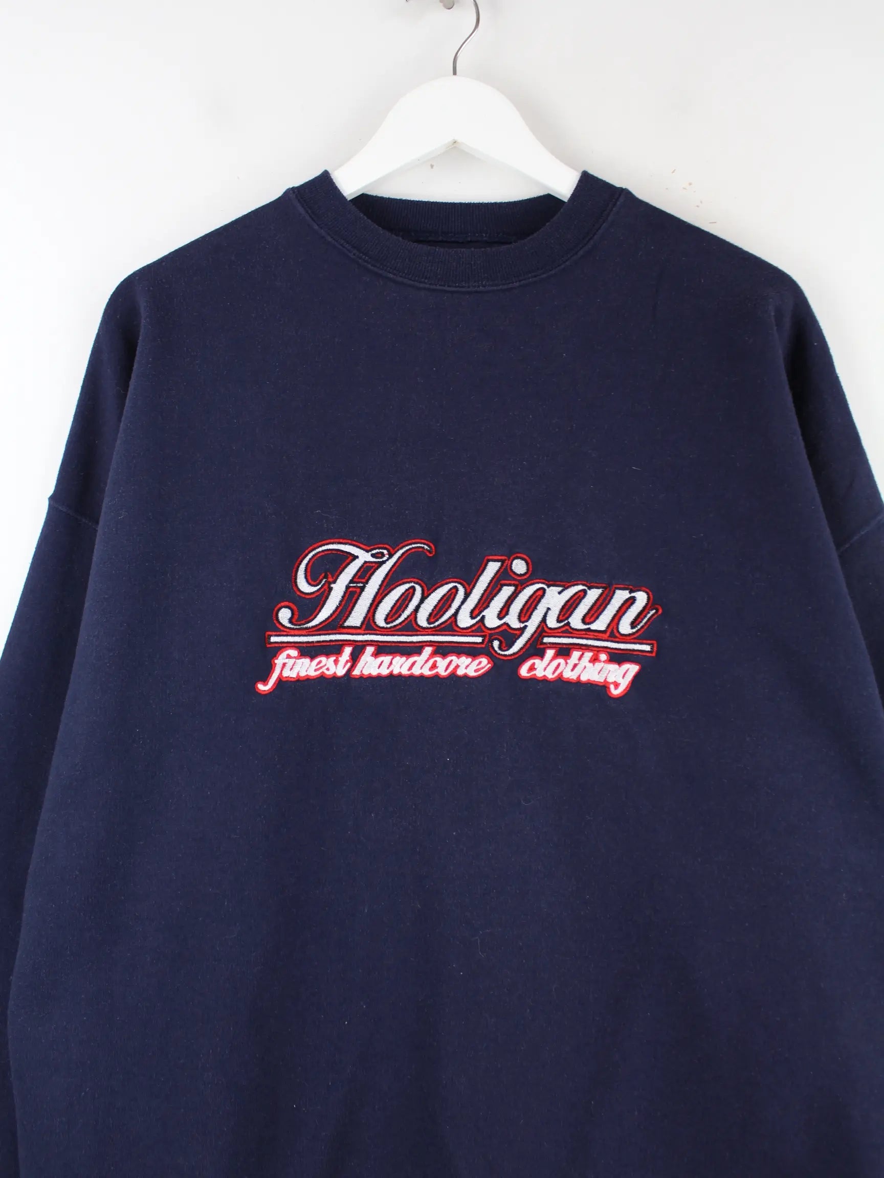 Vintage 00s Hooligan Embroidered Oversize Sweater Blau XL