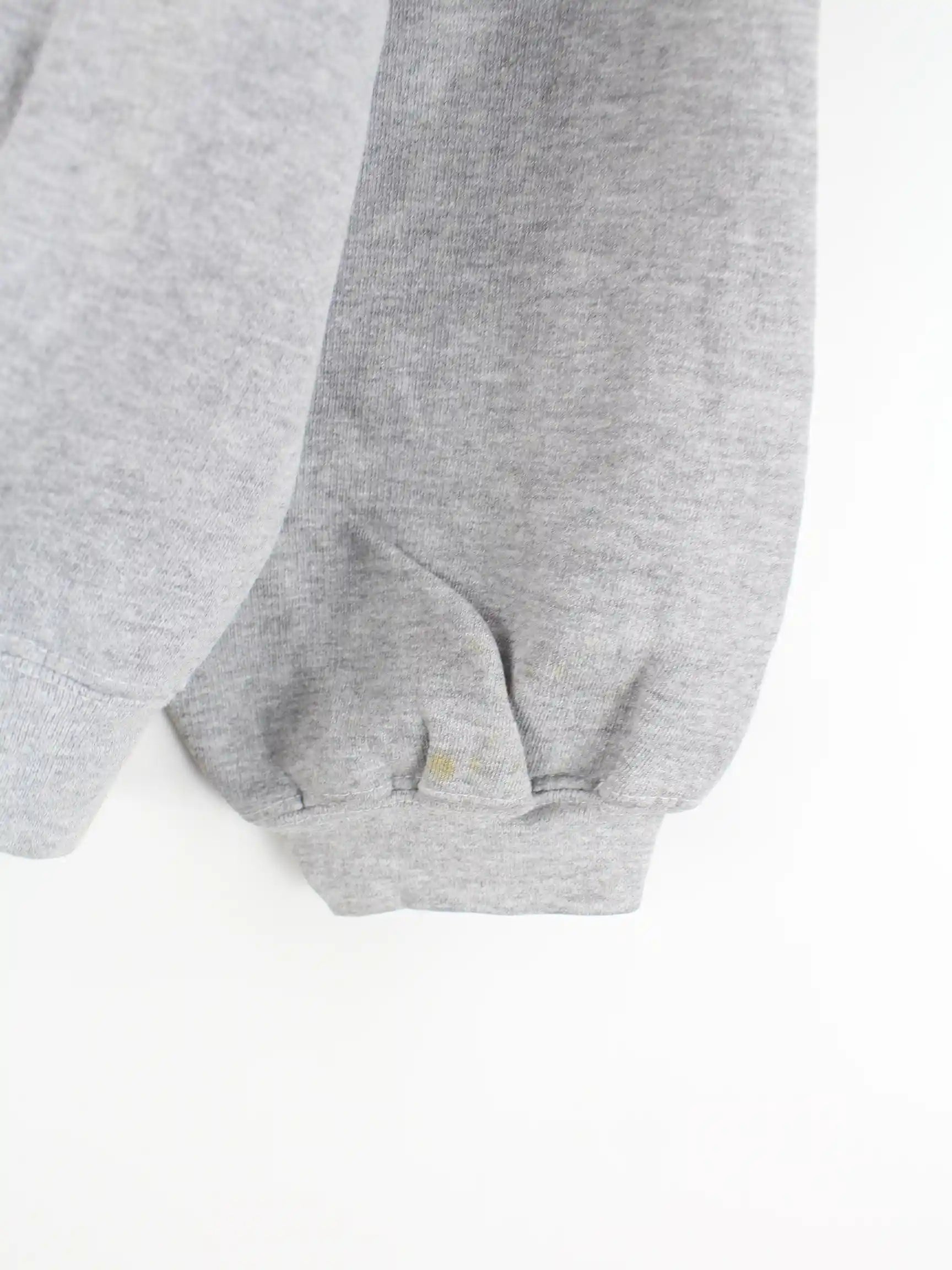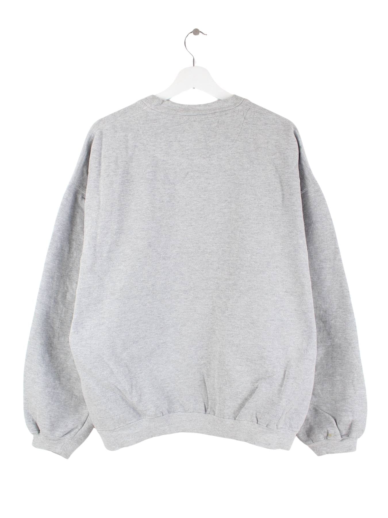 Grauer Vintage Sweater mit gestickten Motiven in Größe XL. Er ist aus einer Baumwollmischung hergestellt und in gutem Zustand im Bestand.