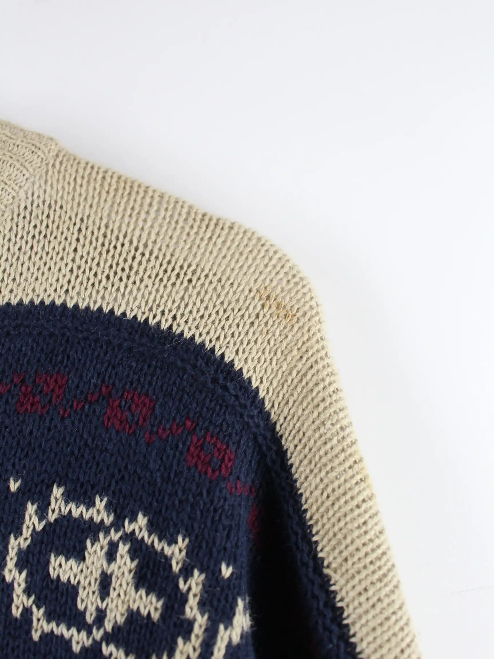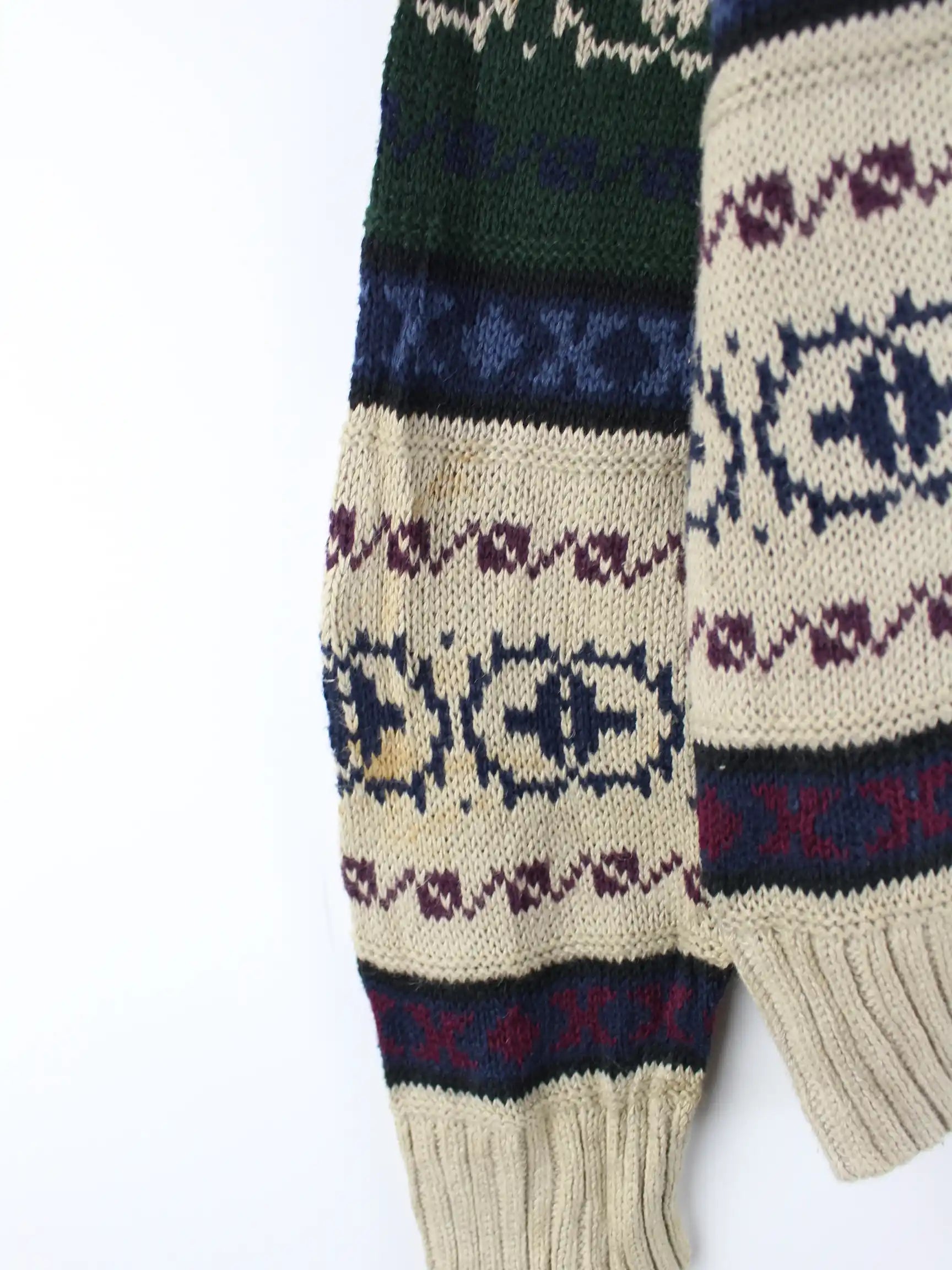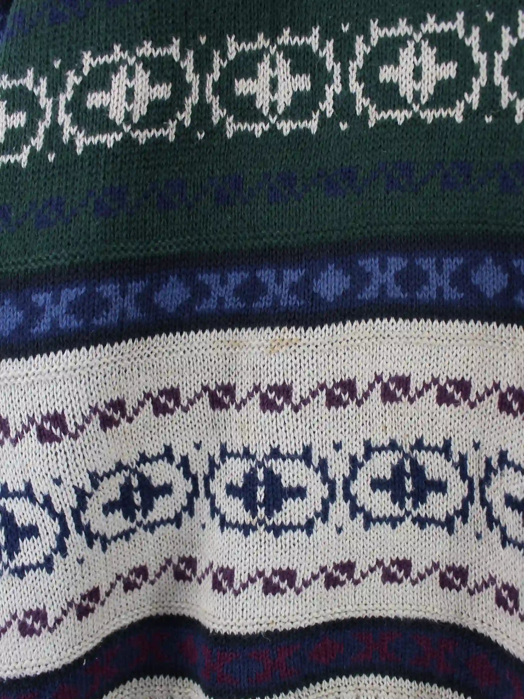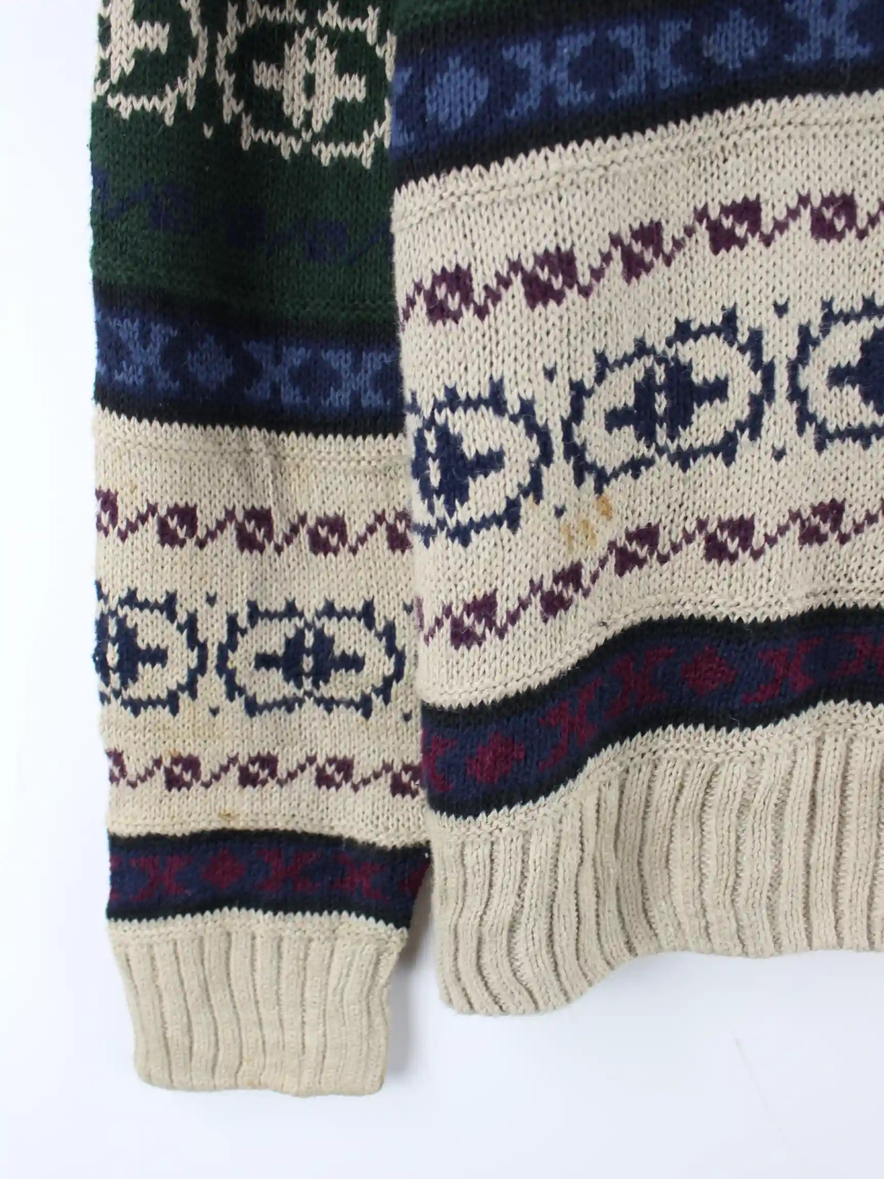 Mehrfarbiger Vintage Pullover in Größe L. Er ist aus einer Baumwollmischung angefertigt. Den Zustand würden wir als 'In Ordnung' bezeichnen (vergl. Bilder).