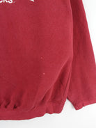 Roter Vintage Sweater mit gestickten Motiven in Größe L. Er ist aus einer Baumwollmischung hergestellt und in gutem Zustand zu haben.