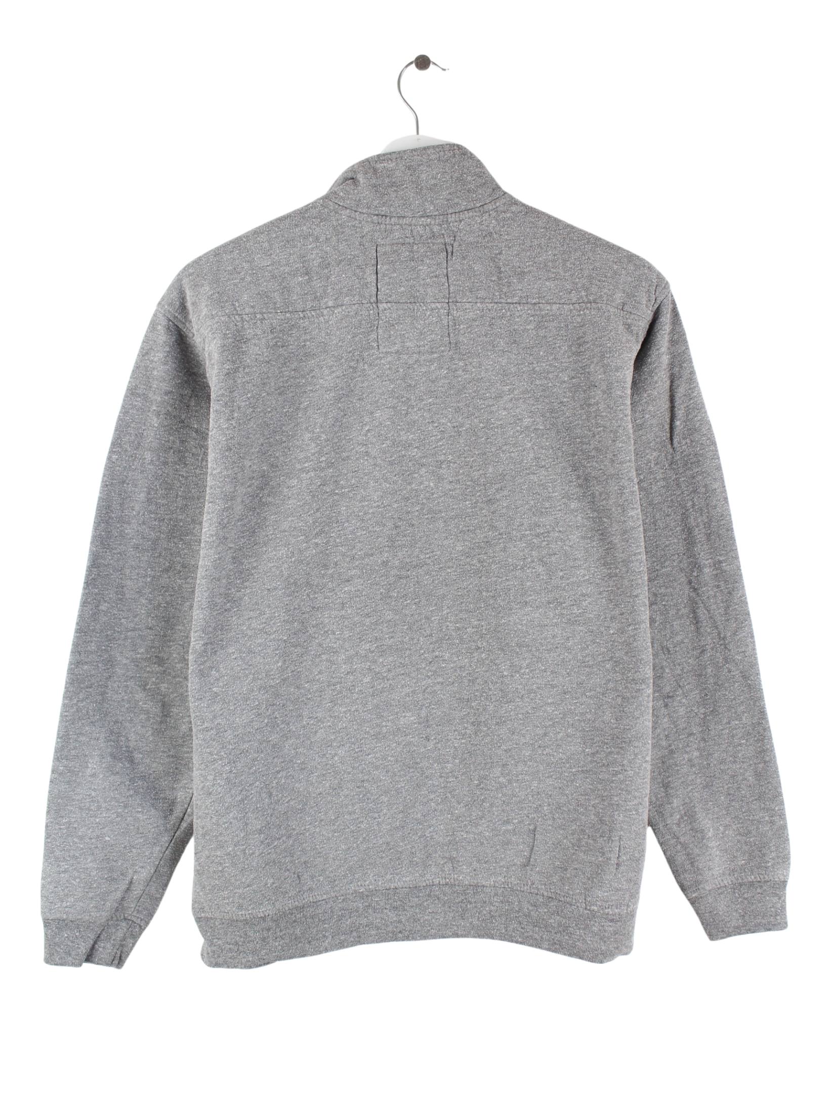 Grauer Vintage Sweater mit gestickten Motiven und half Zip in Größe S. Er ist aus einer Baumwollmischung angefertigt und in sehr gutem Zustand lieferbar.