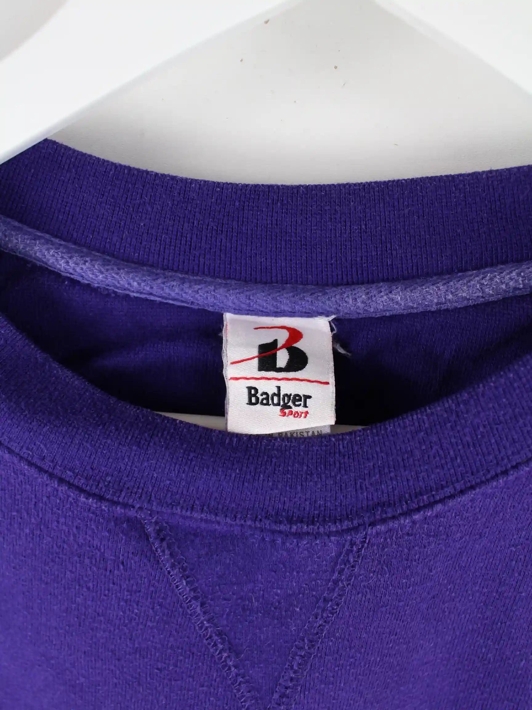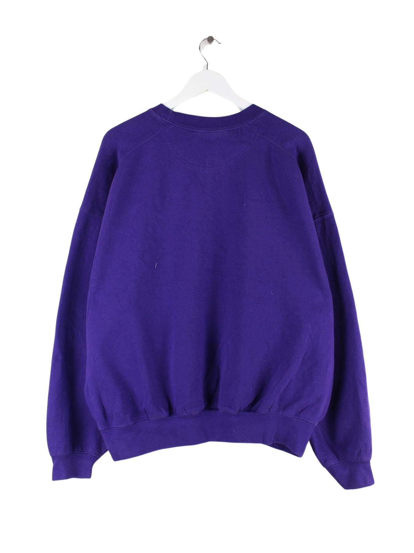 Lilafarbener Vintage Sweater in Größe XXL. Er ist aus einer Baumwollmischung gefertigt und in sehr gutem Zustand auf Lager. Mit tollem Trojans Print.