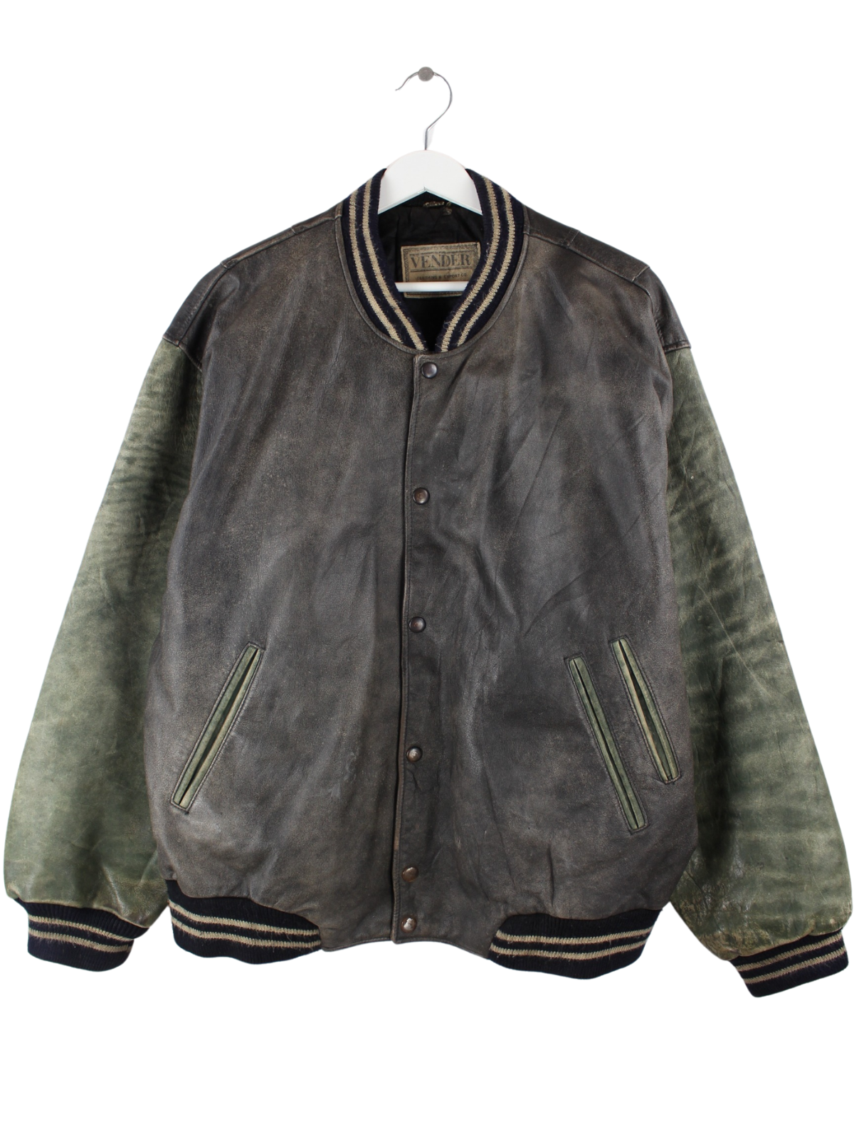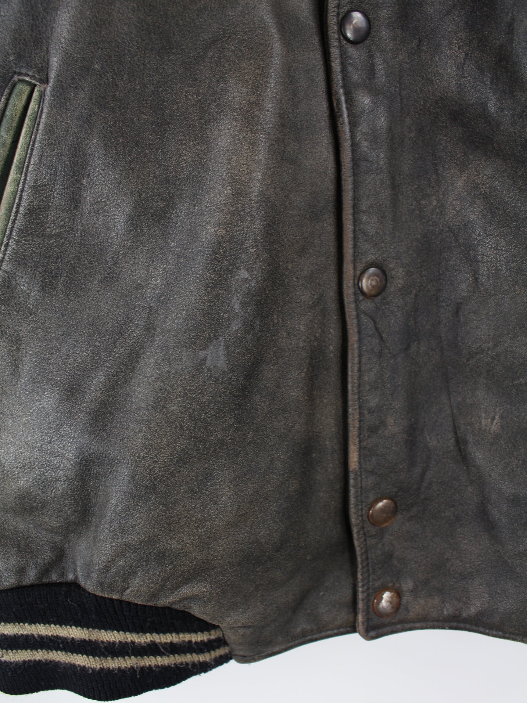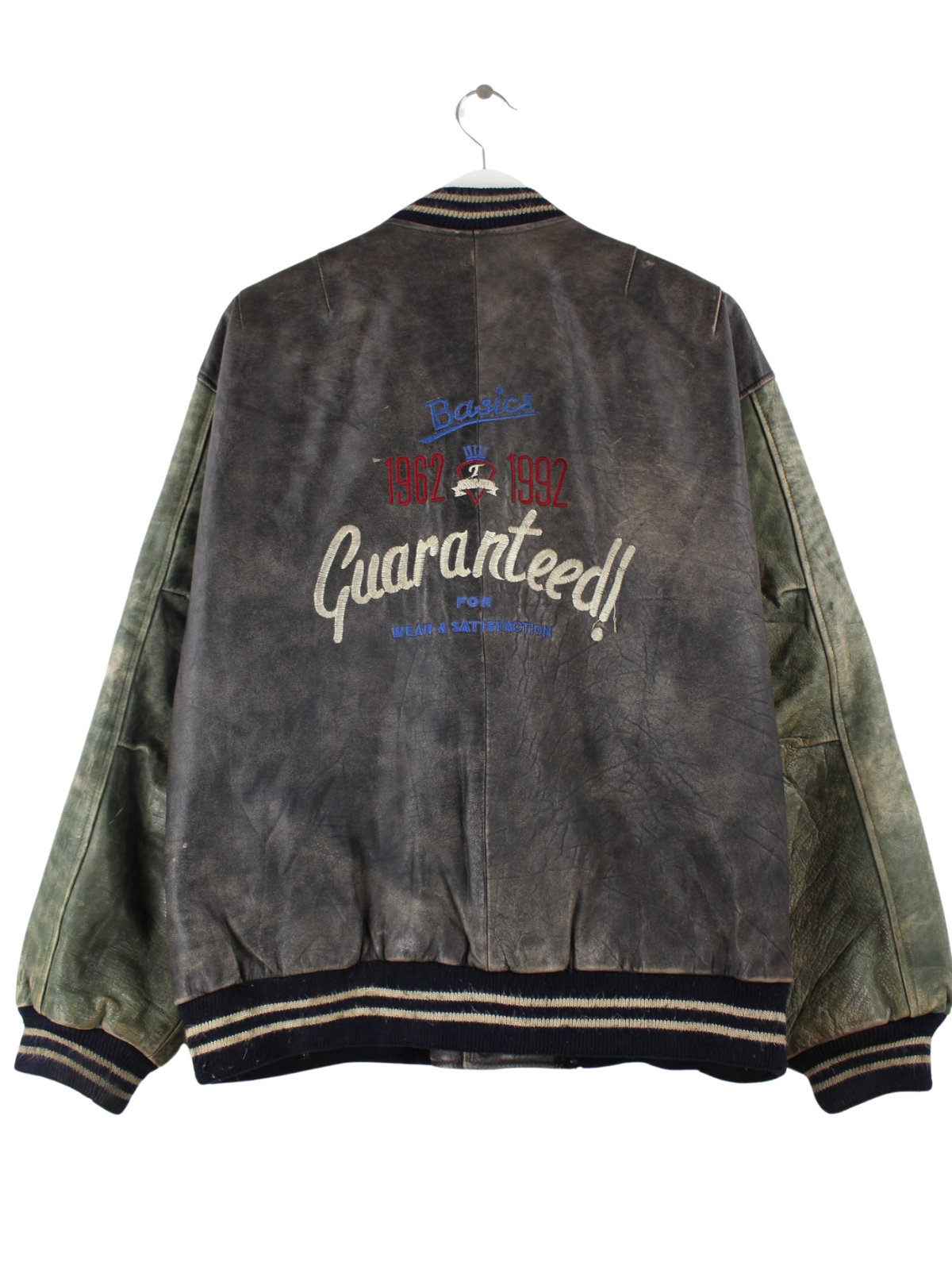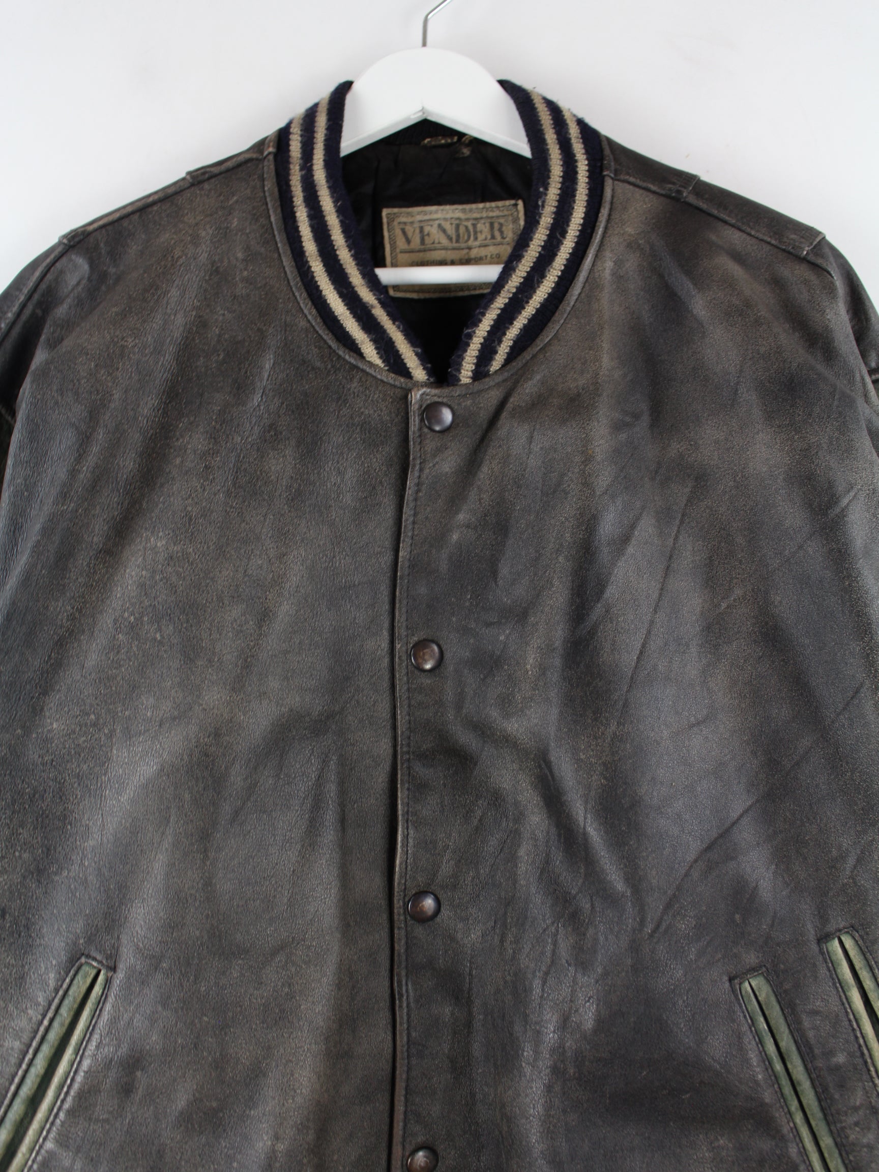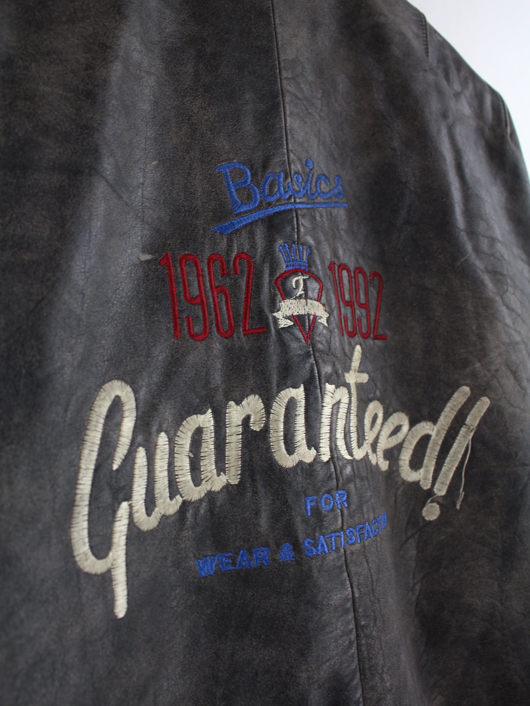 Vintage 1992 Embroidered College Leder Jacke Grau L