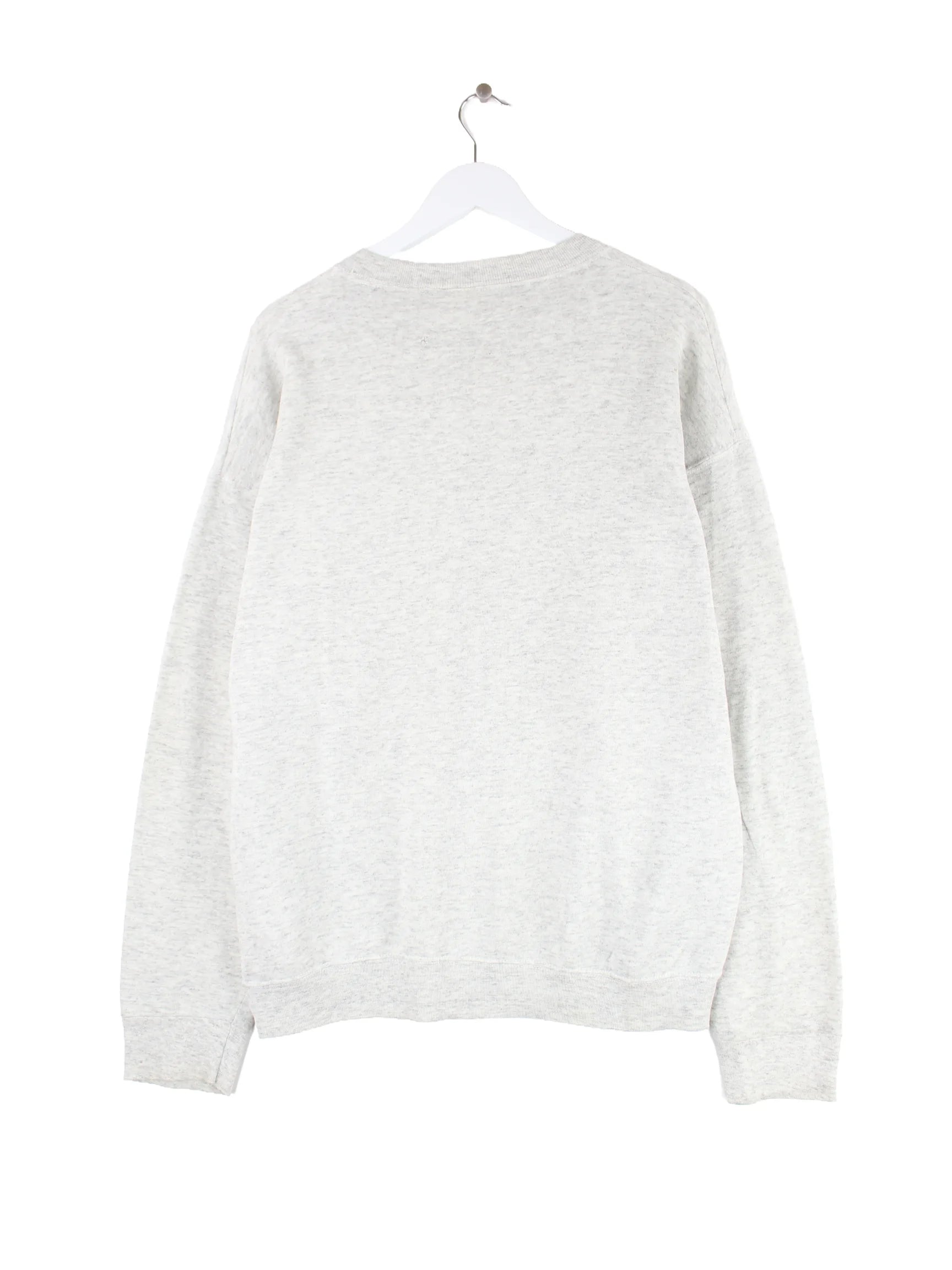 Vintage Sweater in Größe XL. Er ist aus einer Baumwollmischung und in Grau in Stock. Mit seltenem Dolphins Print.