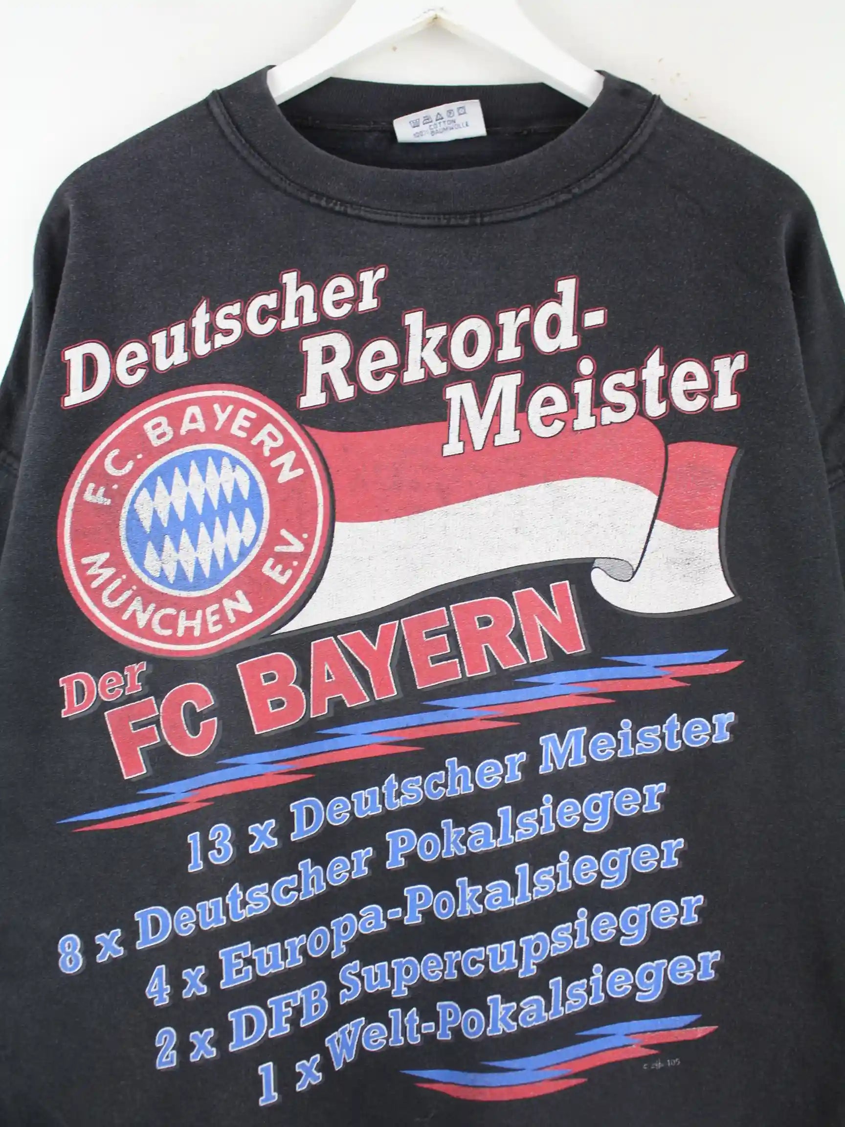 Vintage 1996 FC Bayern Rekordmeister Print Sweater Schwarz L