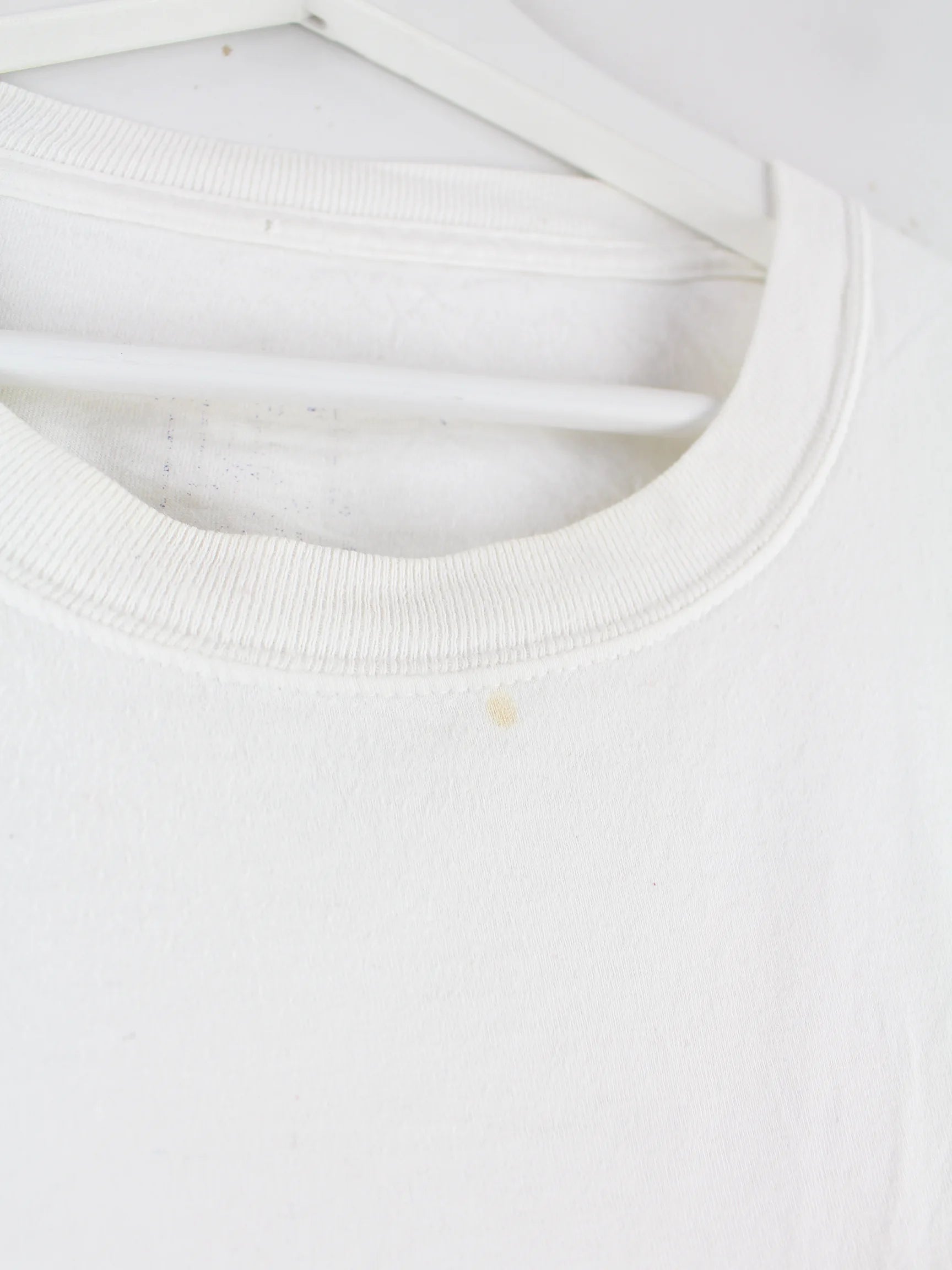 Weißes Vintage T-Shirt in Größe XXL. Es ist aus Baumwolle angefertigt und in gutem Zustand vorrätig. Mit tollem Fish Print.