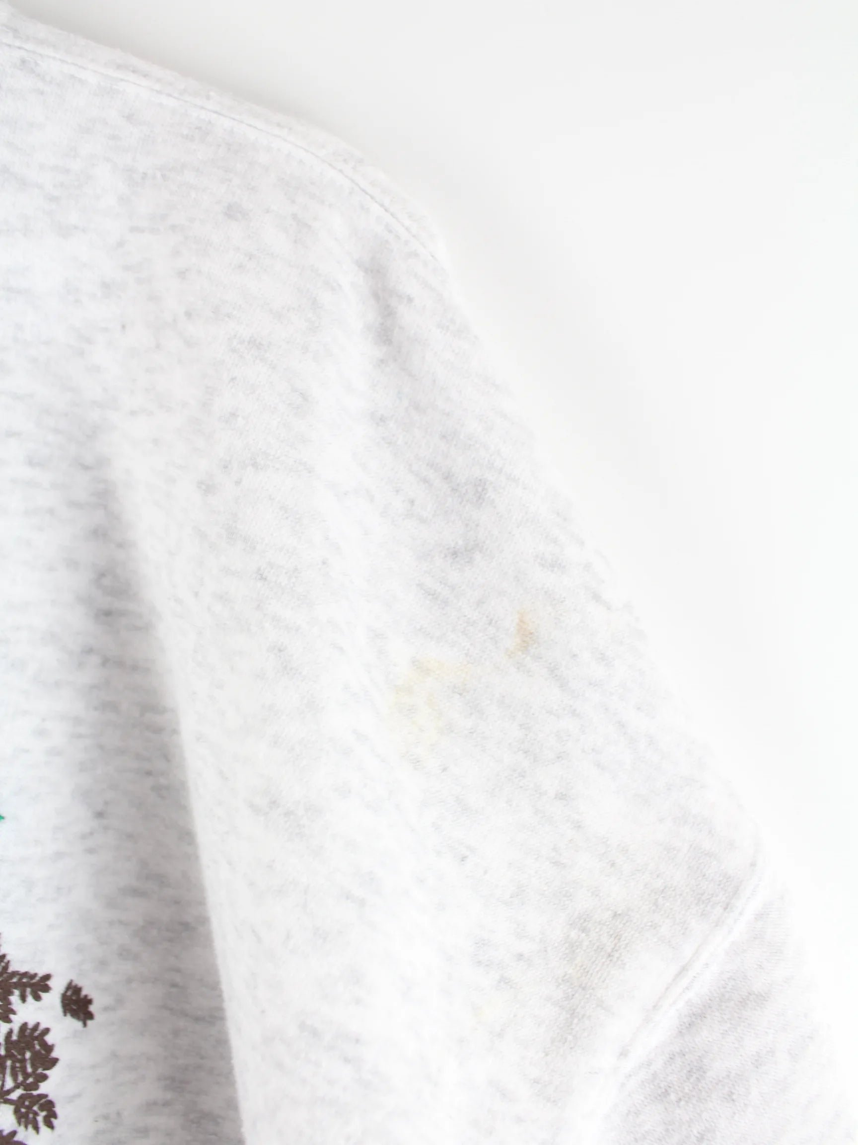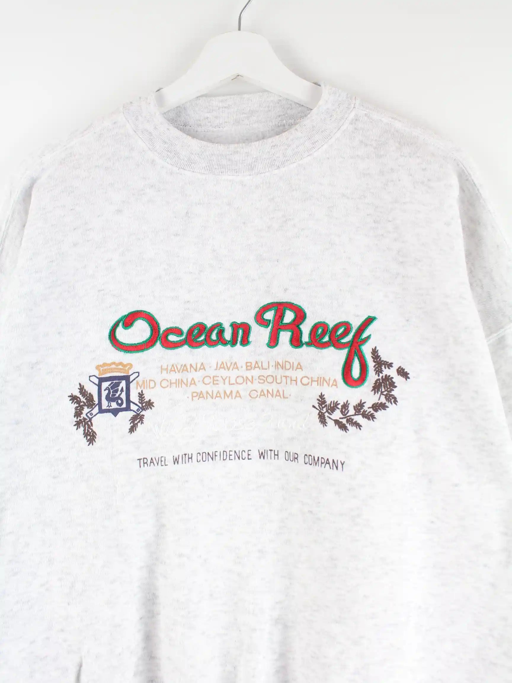 Vintage Sweater in Größe S aus den 80'ern. Er ist aus einer Baumwollmischung und in Grau bei uns zu bekommen.