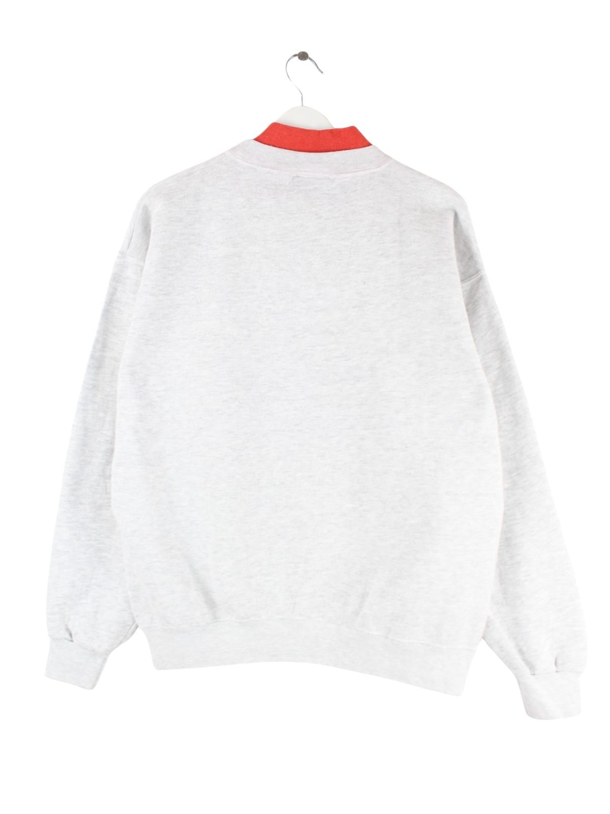 Grauer Vintage Sweater mit gesticktem Logo aus den 80'ern in Größe L. Er ist aus einer Baumwollmischung hergestellt und in sehr gutem Zustand in Stock.