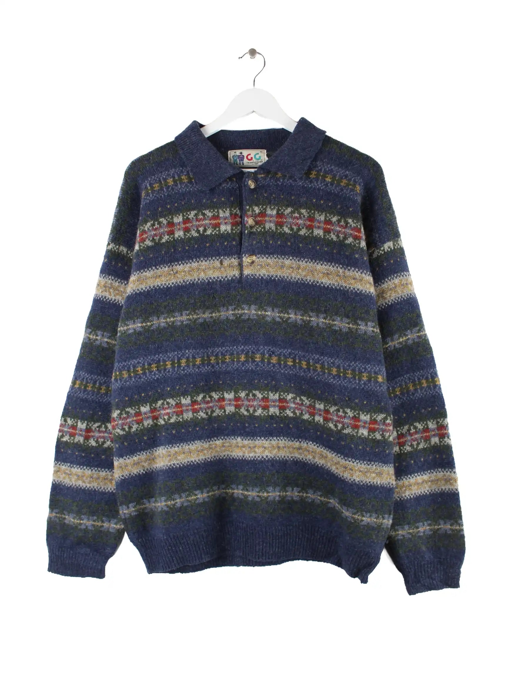 Vintage Pullover in Größe L aus den 80'ern. Er ist aus Baumwolle produziert und in bunten Farben auf Lager.