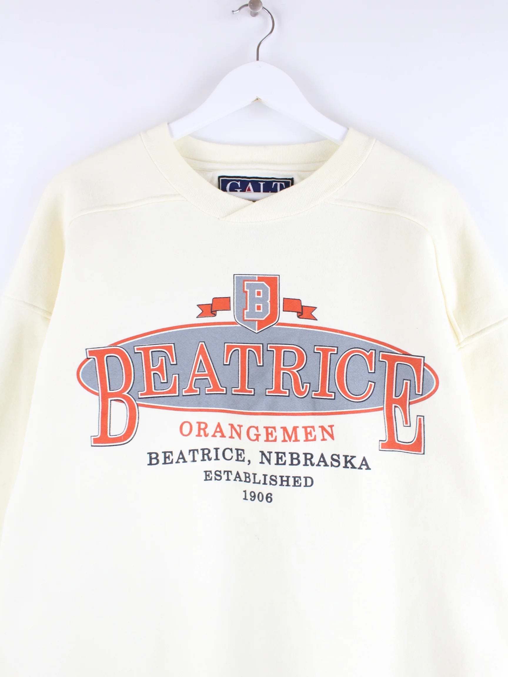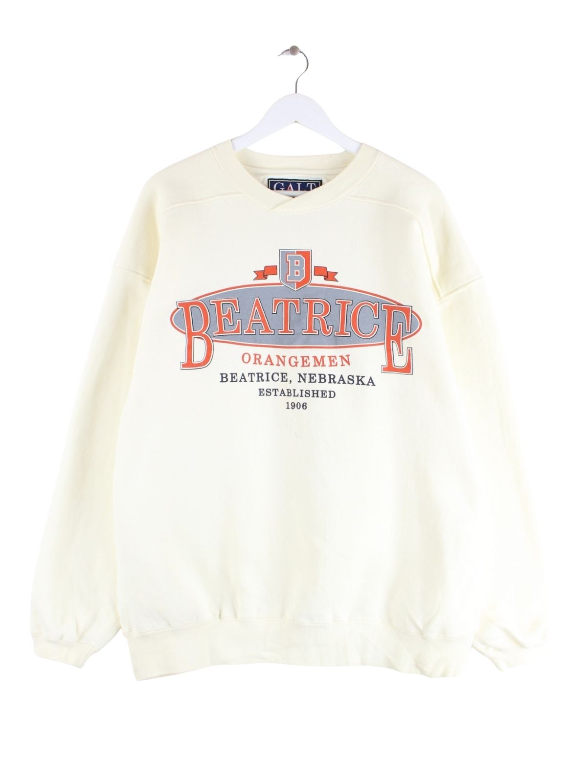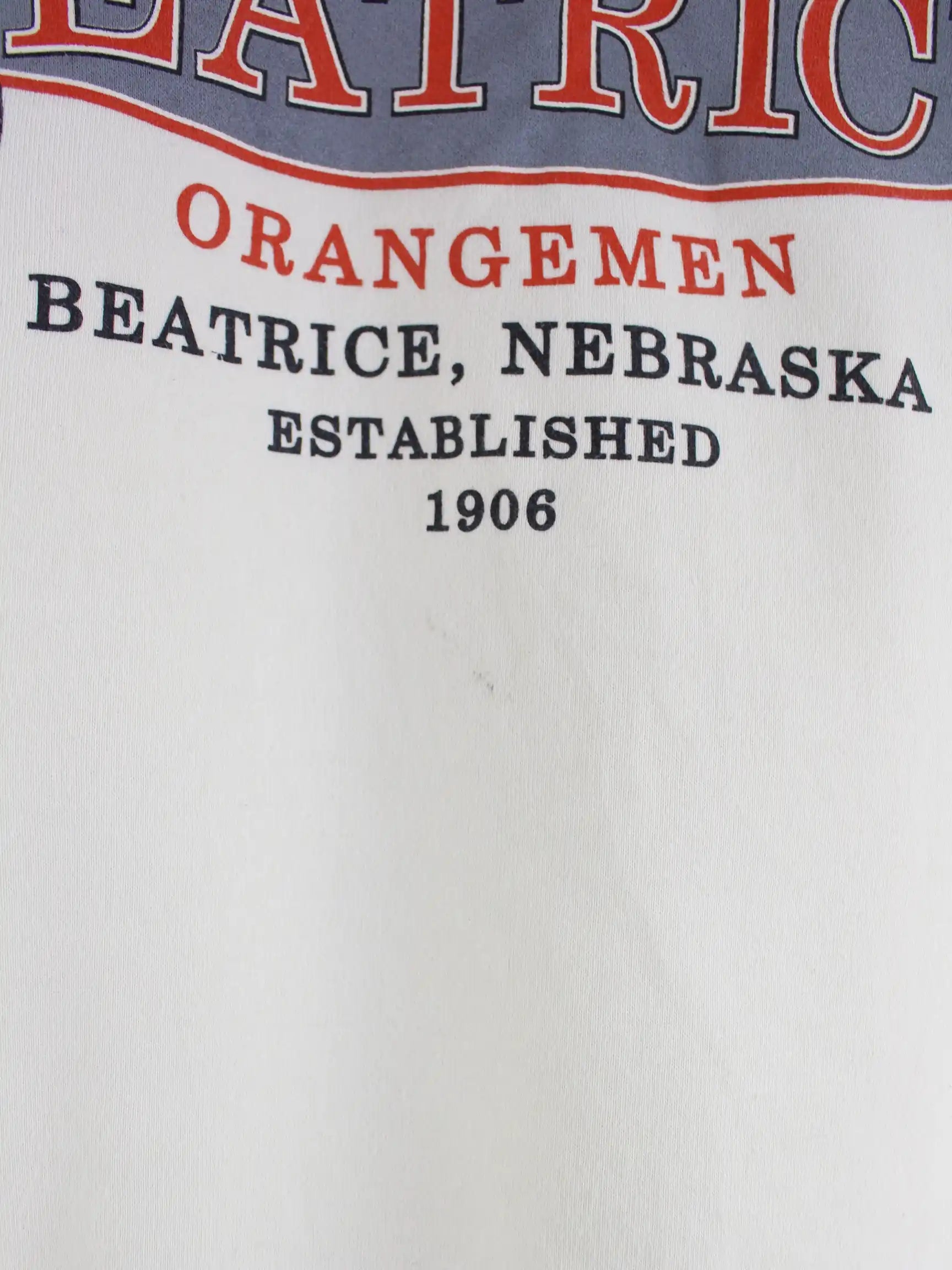 Vintage 90s Beatrice Nebraska Print Oversized Sweater Beige L