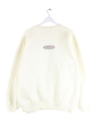 Beigefarbener Vintage Sweater aus den 90'ern in Größe L. Er ist aus einer Baumwollmischung produziert und in gutem Zustand vorrätig. Mit schickem Nebraska Print.