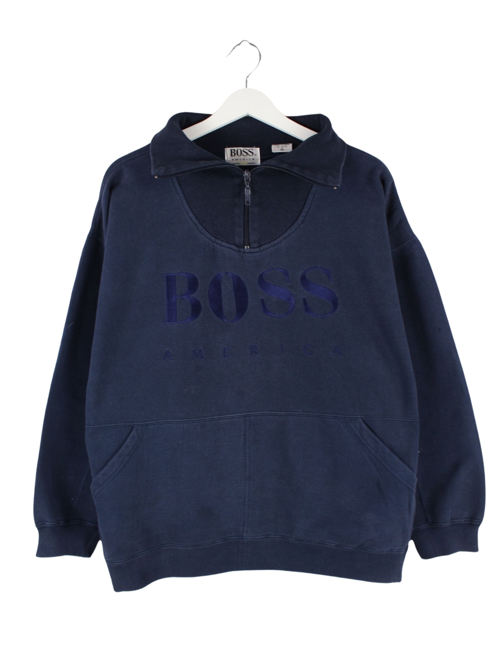 Vintage 90s Boss Embroidered Half Zip Sweater Blau M