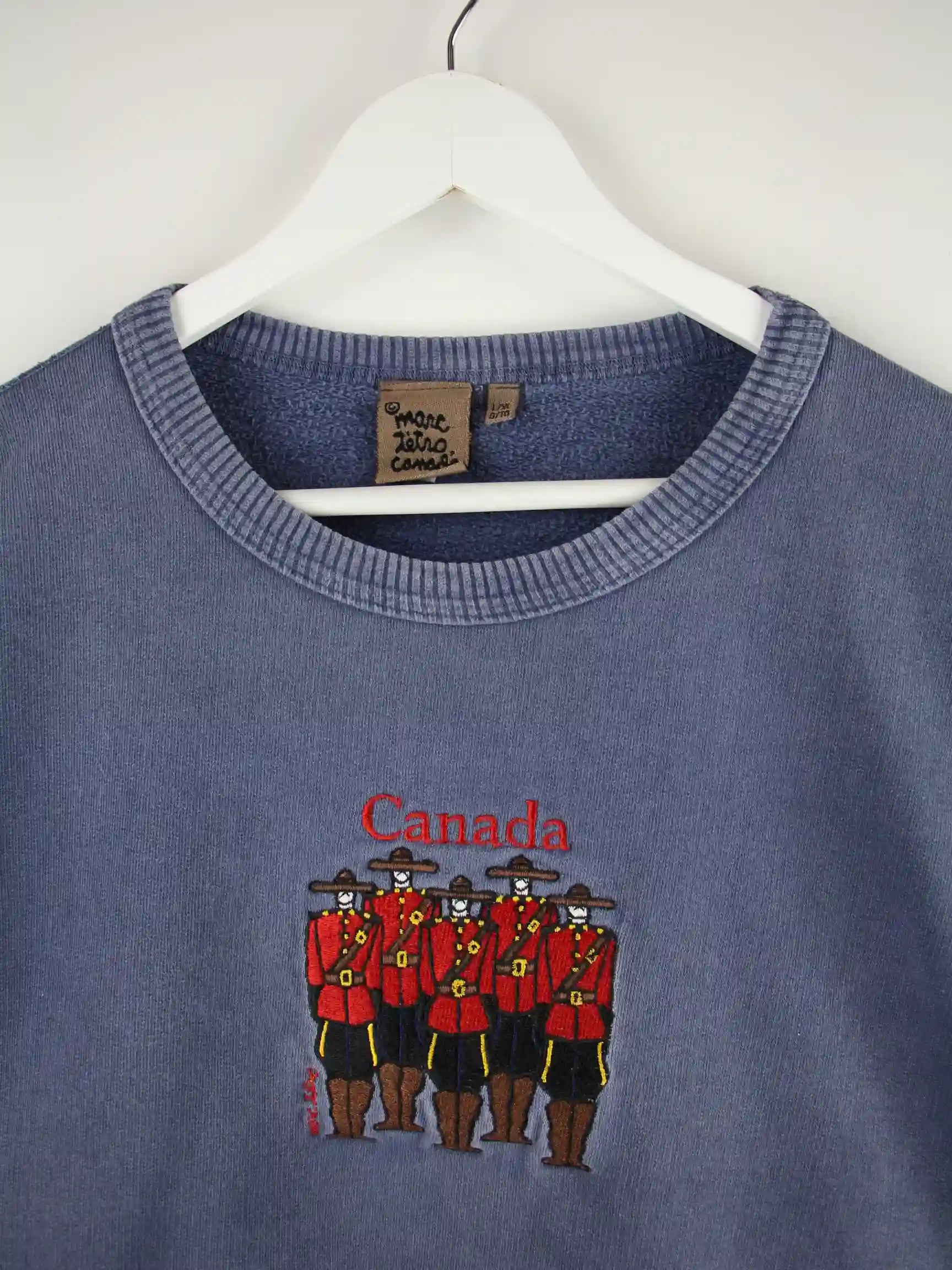Blauer Vintage Sweater aus den 90'ern in Größe XL. Er ist aus einer Baumwollmischung gemacht und in gutem Zustand im Angebot.