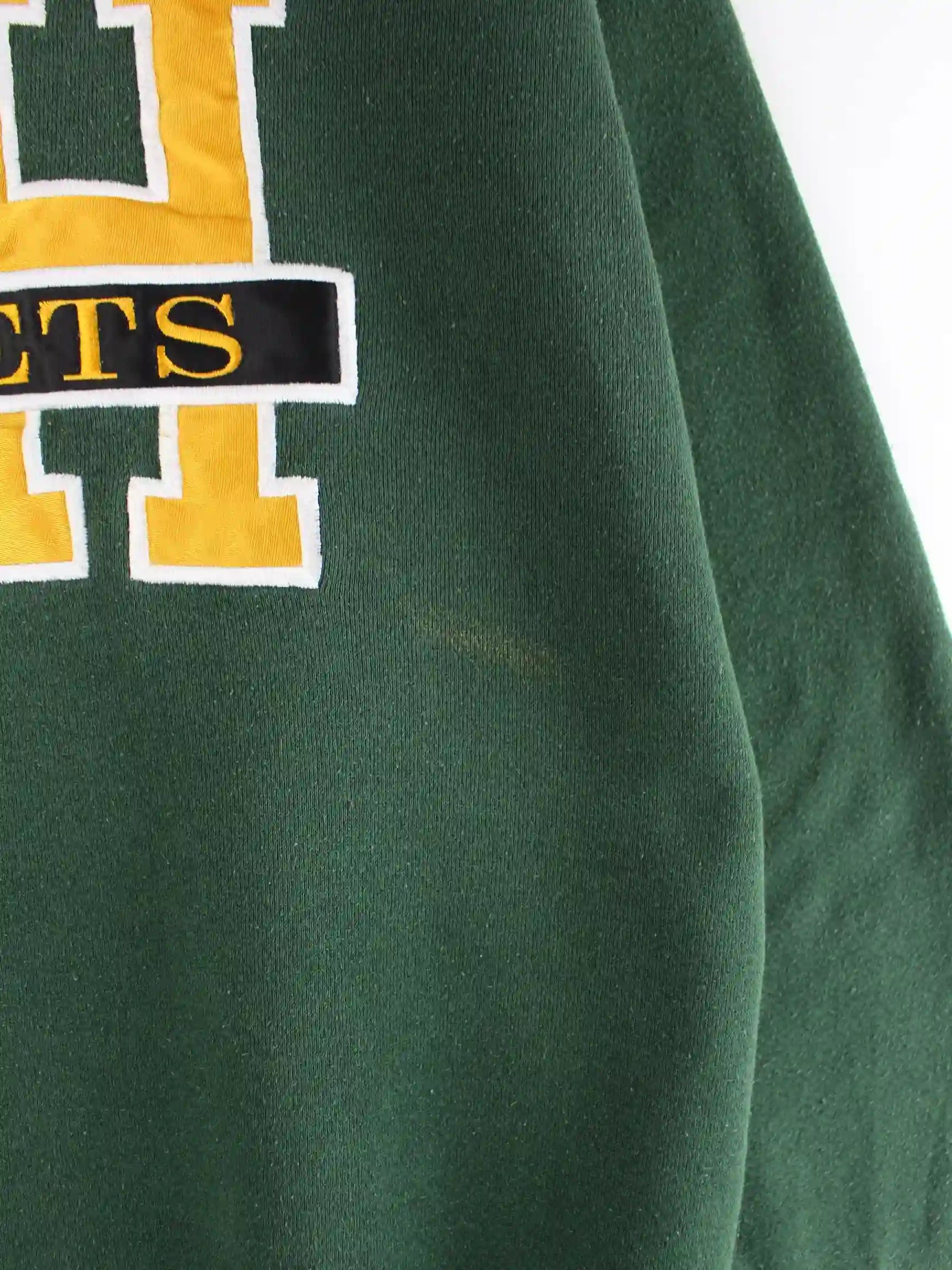 Grüner Vintage Sweater aus den 90'ern in Größe XL. Er ist aus einer Baumwollmischung gefertigt und in gutem Zustand bei uns vorrätig.