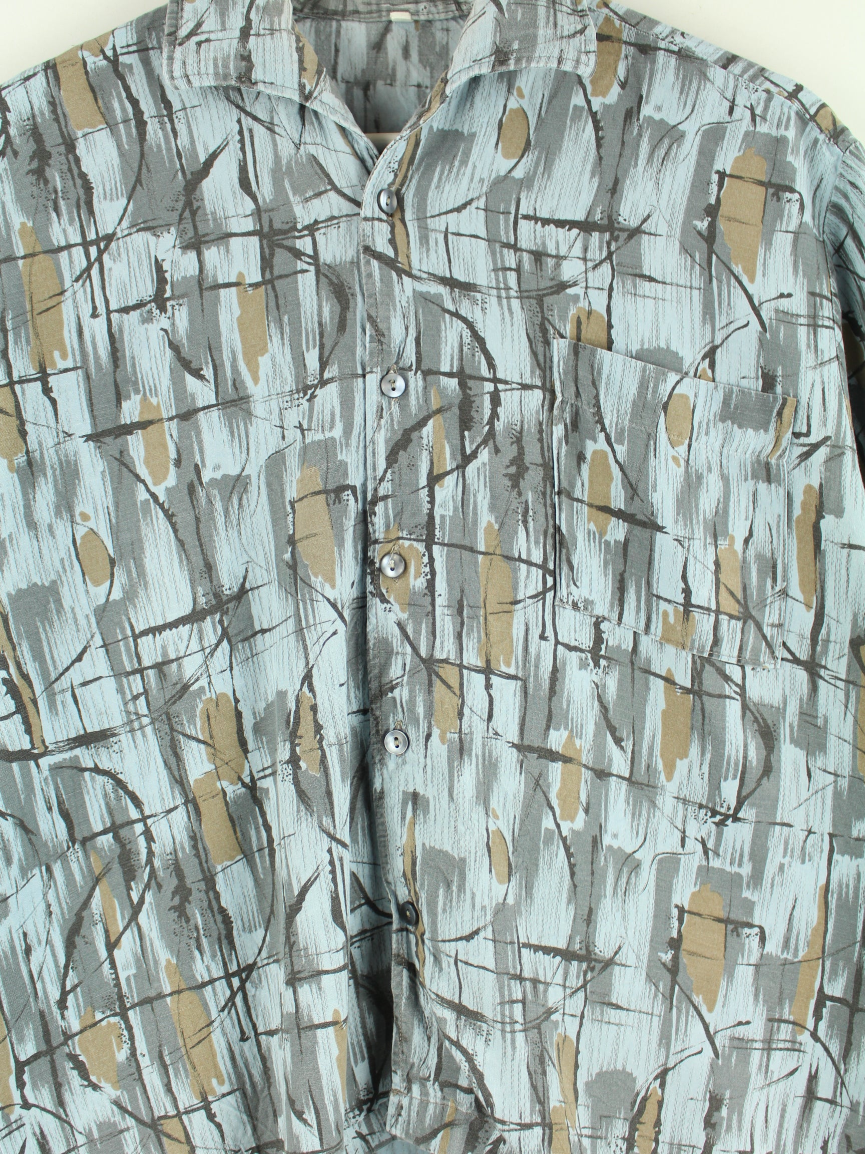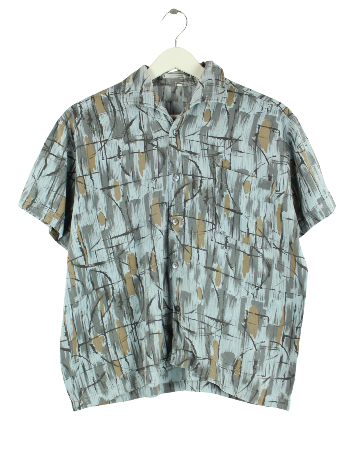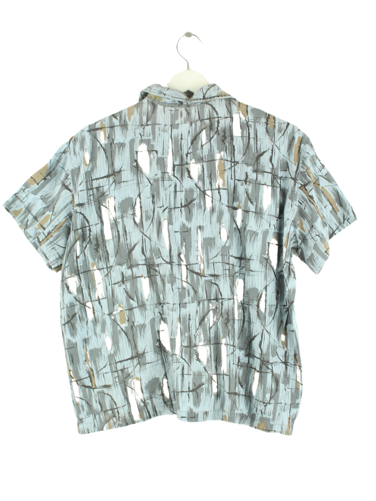 Vintage 90s Damen Crazy Pattern Short Sleeve Hemd Blau S