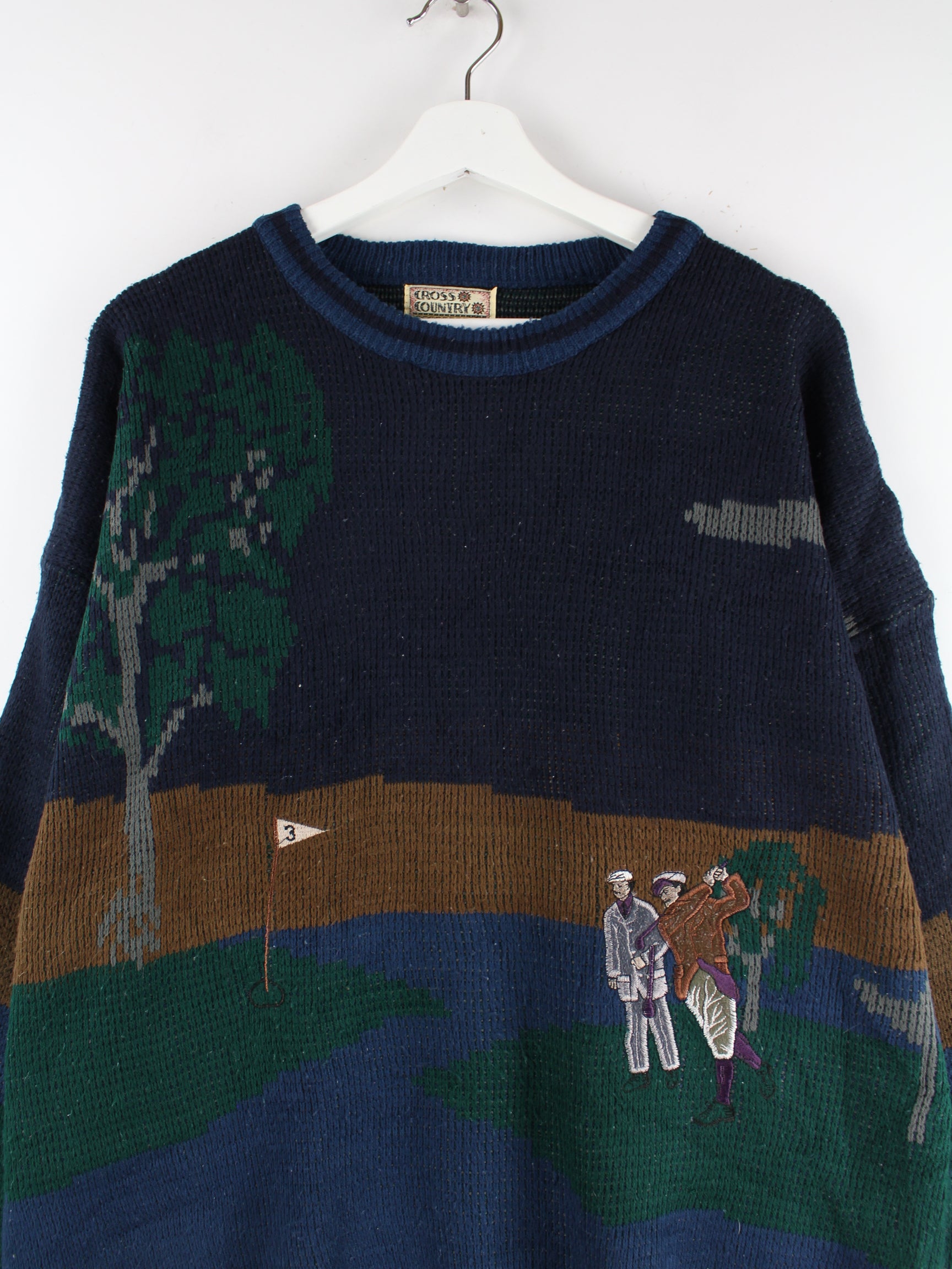 Vintage 90s Cross Country Pullover Mehrfarbig XL