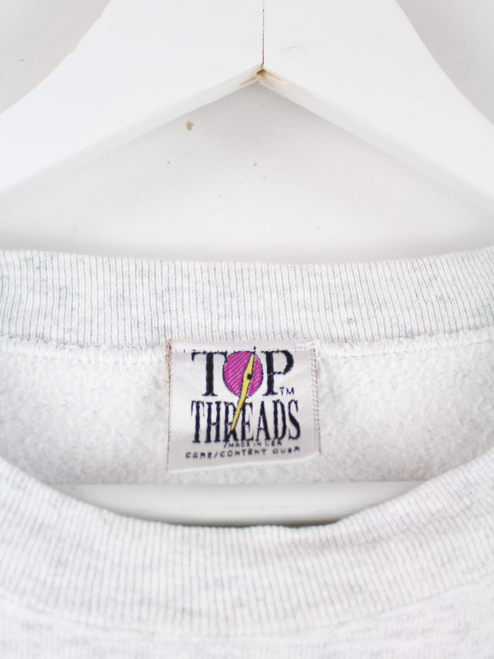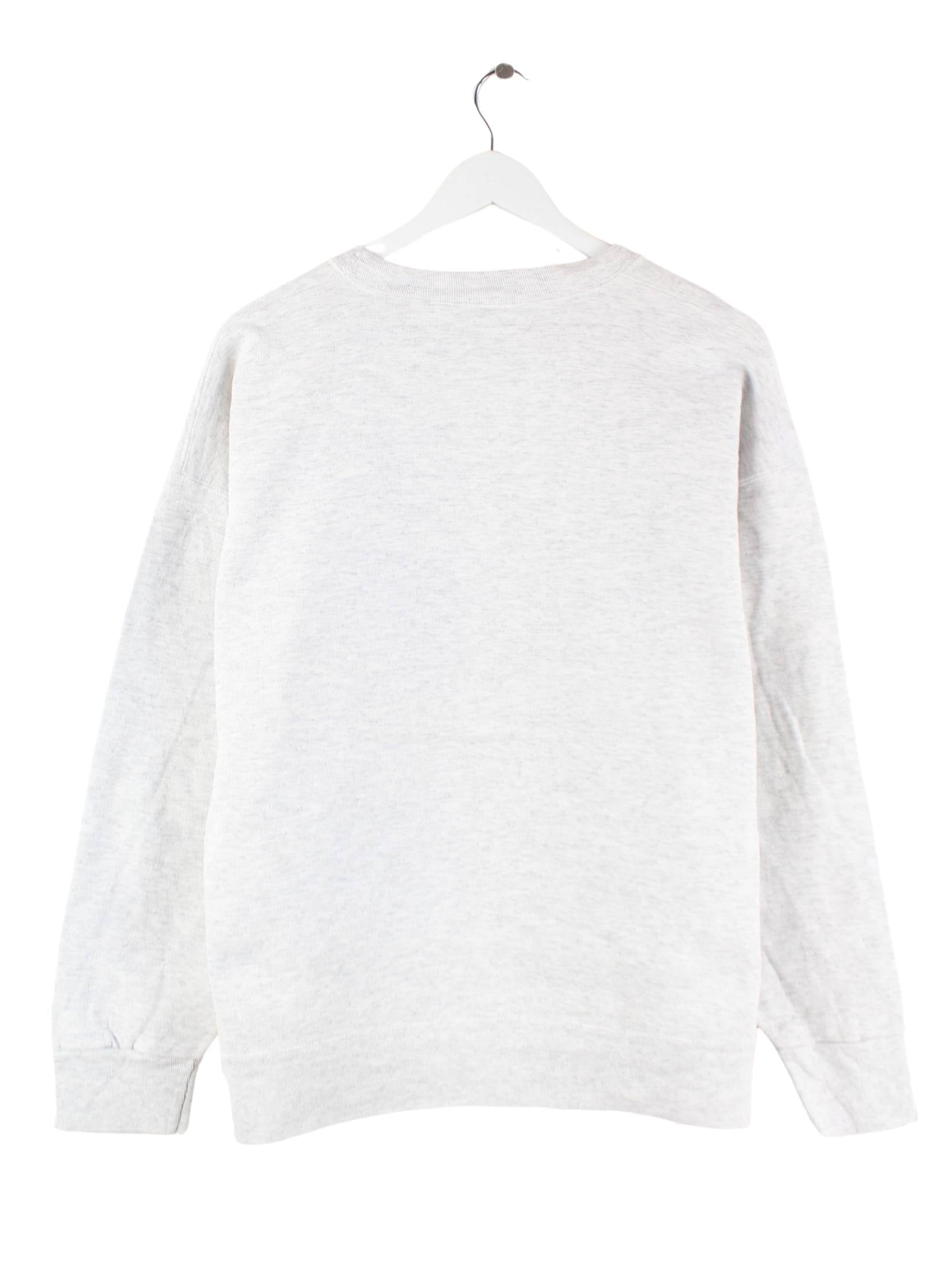 Vintage Sweater mit Stickereien in Größe L aus den 90'ern. Er ist aus einer Baumwollmischung angefertigt und in Grau bei uns zu bekommen.