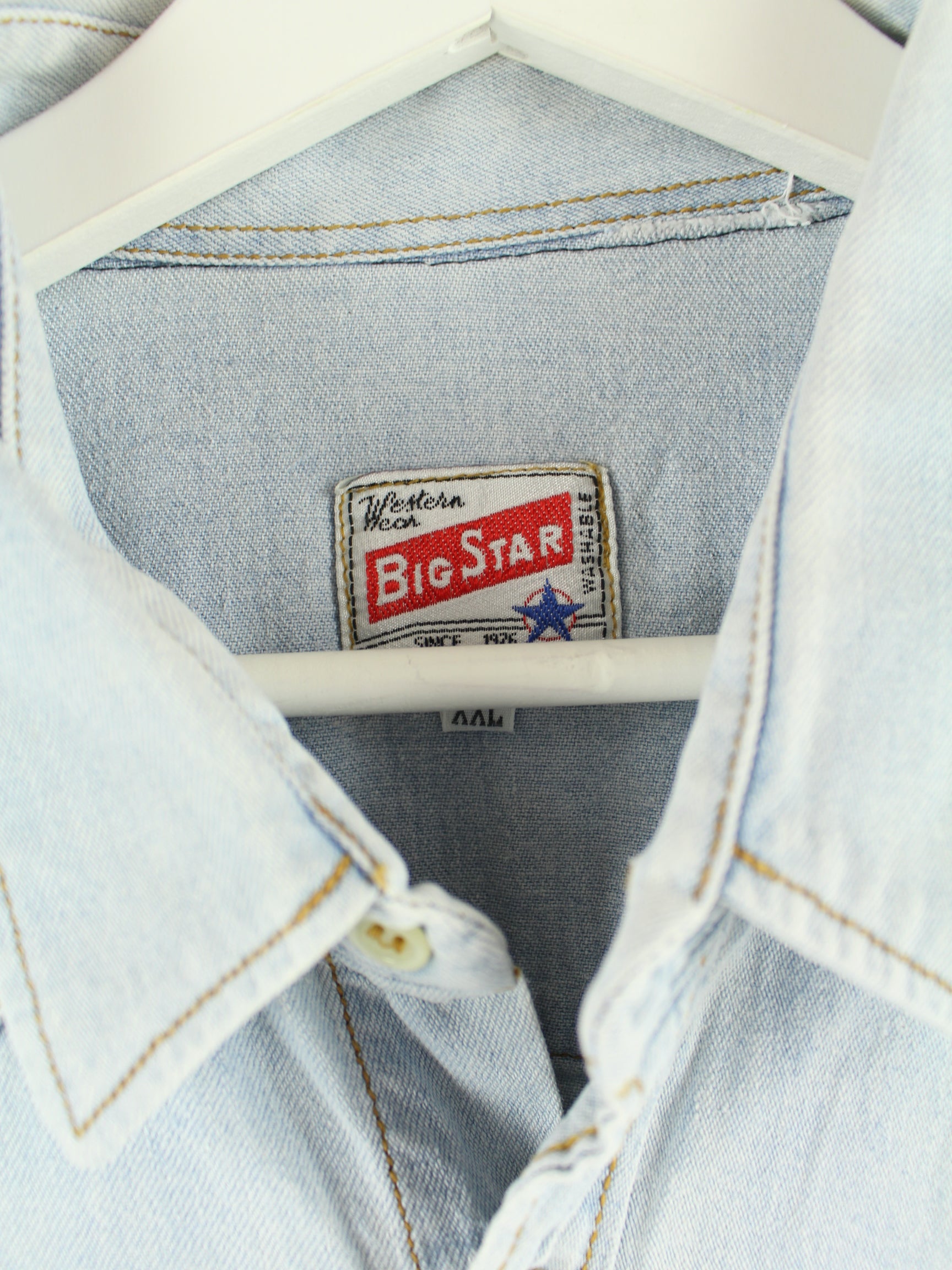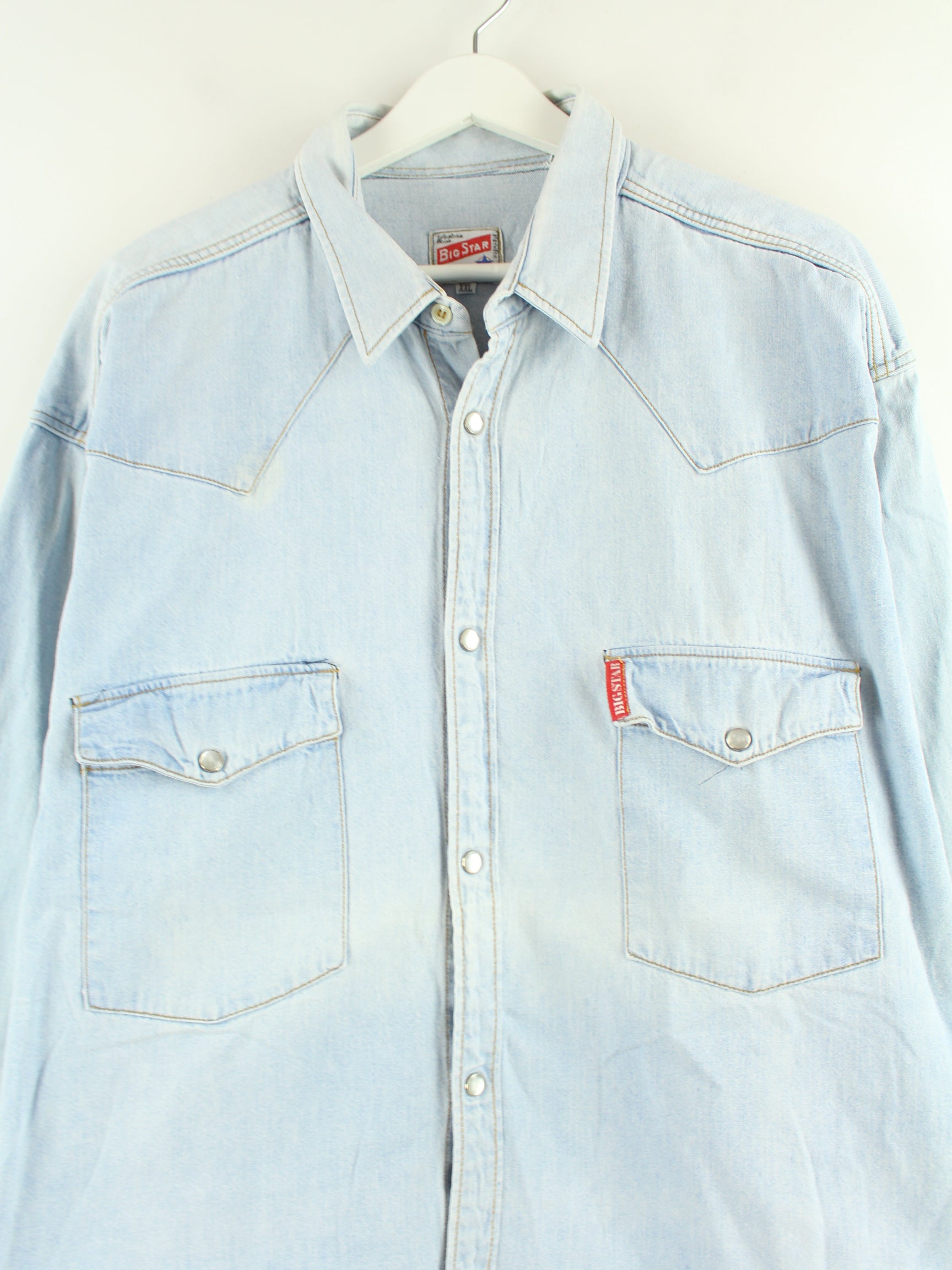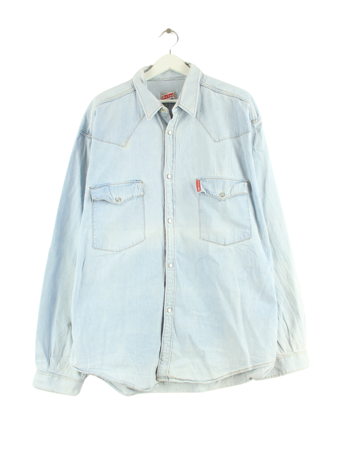 Blaues Vintage Freizeit Hemd aus den 90'ern in Größe XXL. Es ist aus einer Baumwollmischung gemacht und in gutem Zustand lieferbar.