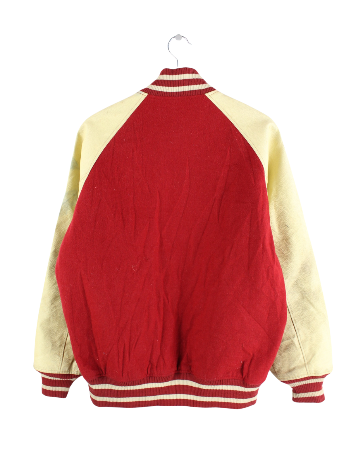 Vintage Jacke mit Stick in Größe L aus den 90'ern. Sie ist aus Mischgewebe angefertigt und in Rot zu haben.