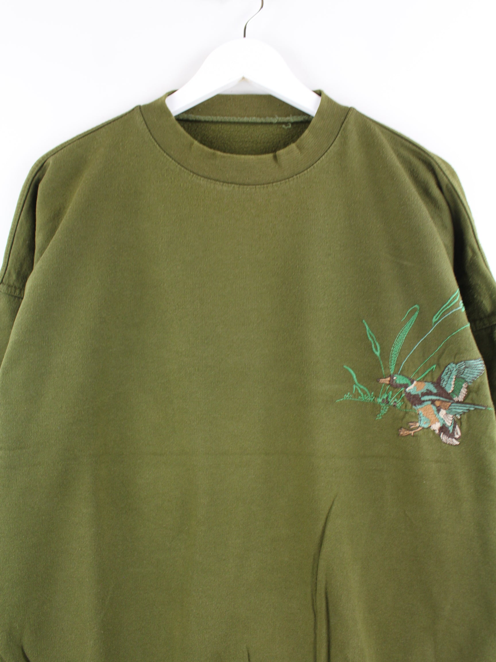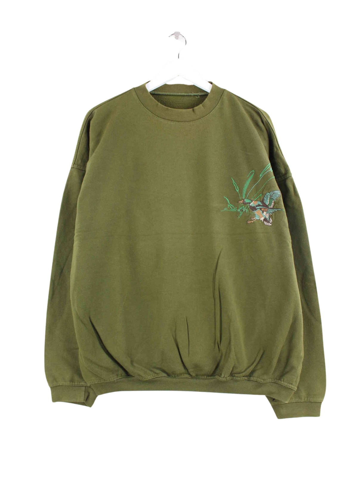 Vintage Sweater mit Stick in Größe XXL aus den 90'ern. Er ist aus einer Baumwollmischung produziert und in Grün im Angebot.