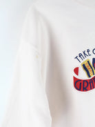 Rosafarbener Vintage Sweater mit gestickten Motiven aus den 90'ern in Größe L. Er ist aus einer Baumwollmischung produziert und in gutem Zustand auf Lager.