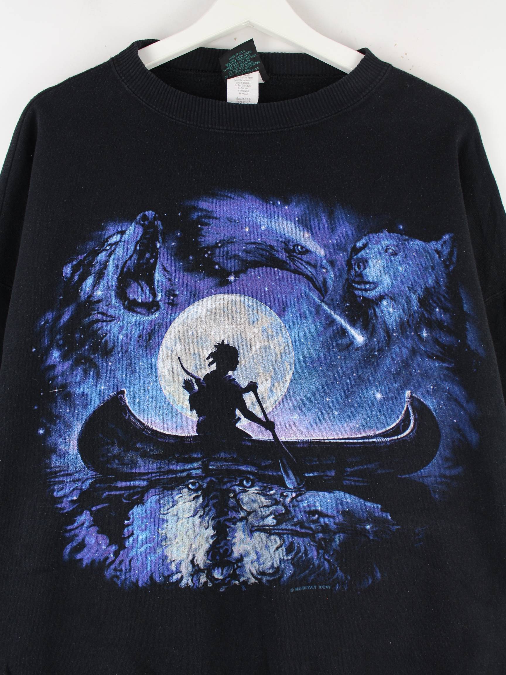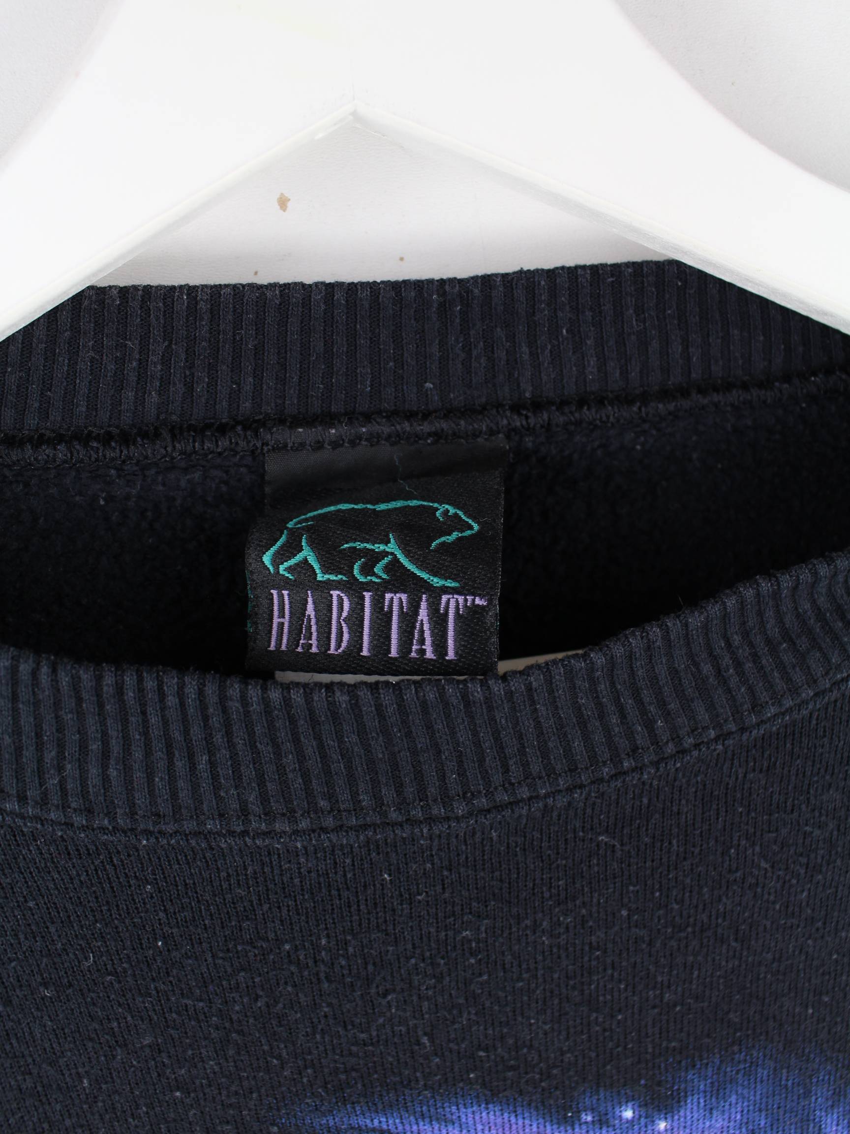 Vintage 90s Habitat Lake Print Sweater Schwarz XXL