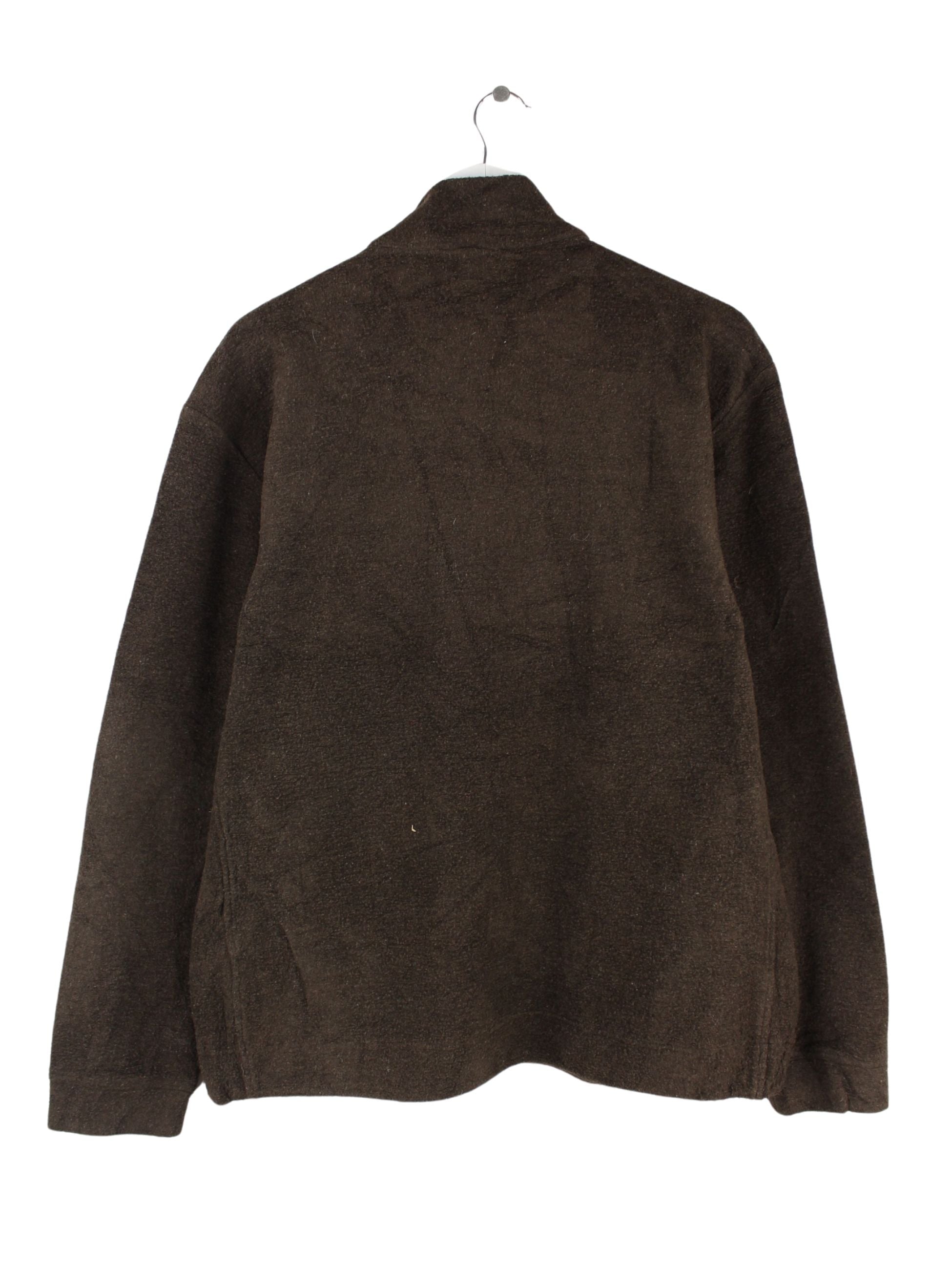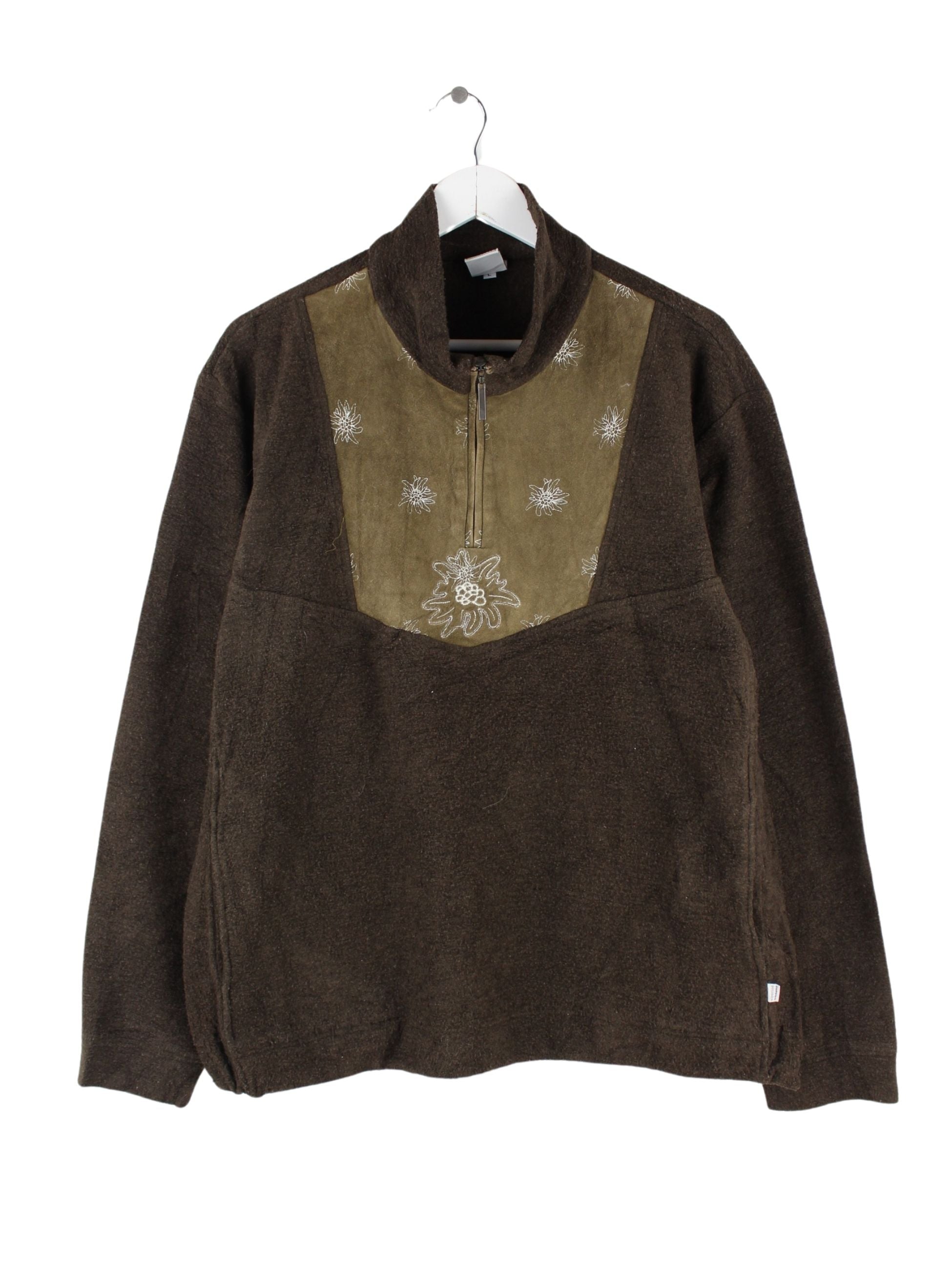 Vintage Sweater mit kurzem Reißverschluß in Größe L aus den 90'ern. Er ist aus behaglichem Fleece angefertigt und in Braun auf Lager.