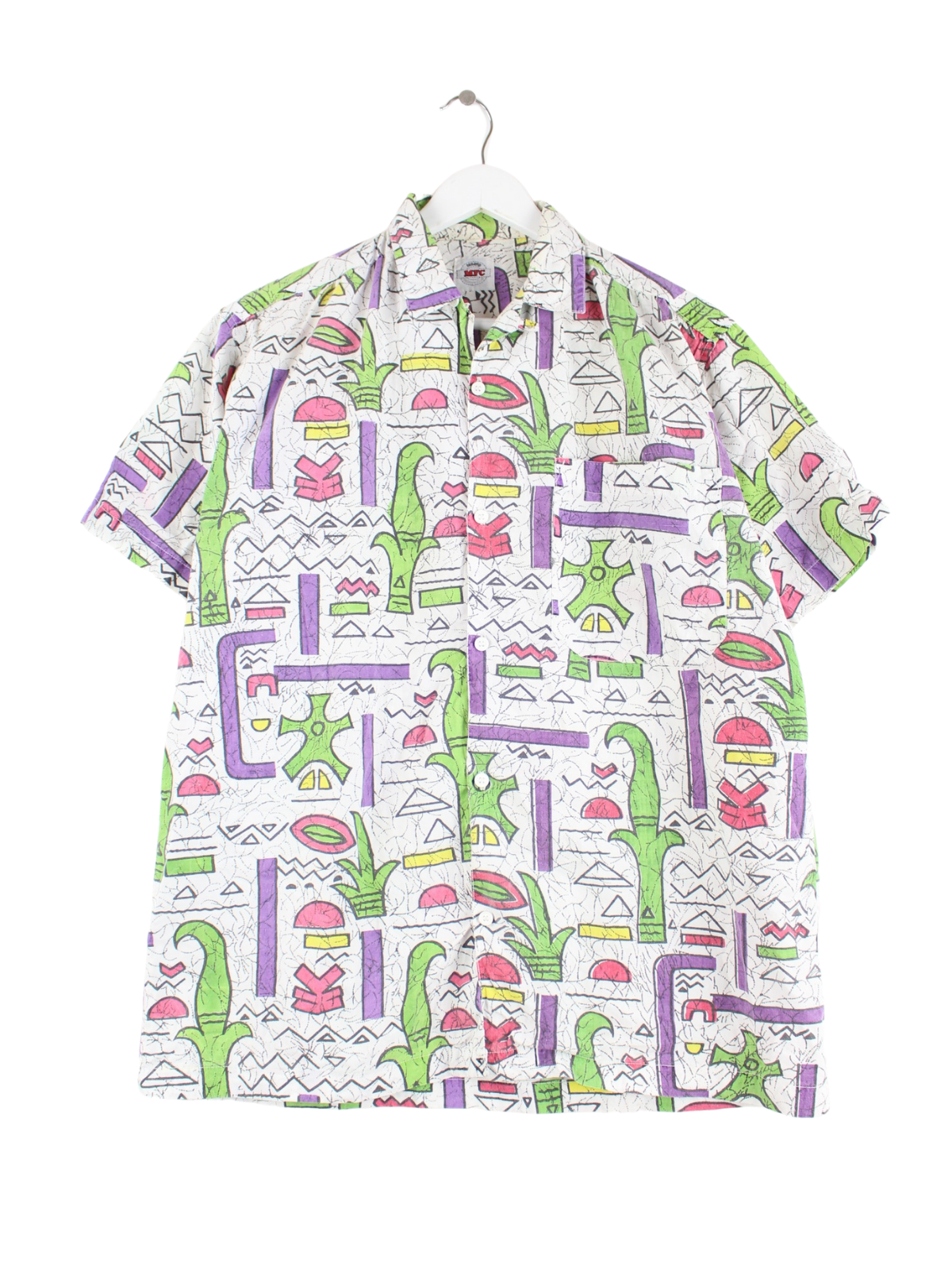 Vintage Freizeit Hemd in Größe S aus den 90'ern. Es ist aus einer Baumwollmischung gemacht und in Weiß in Stock.