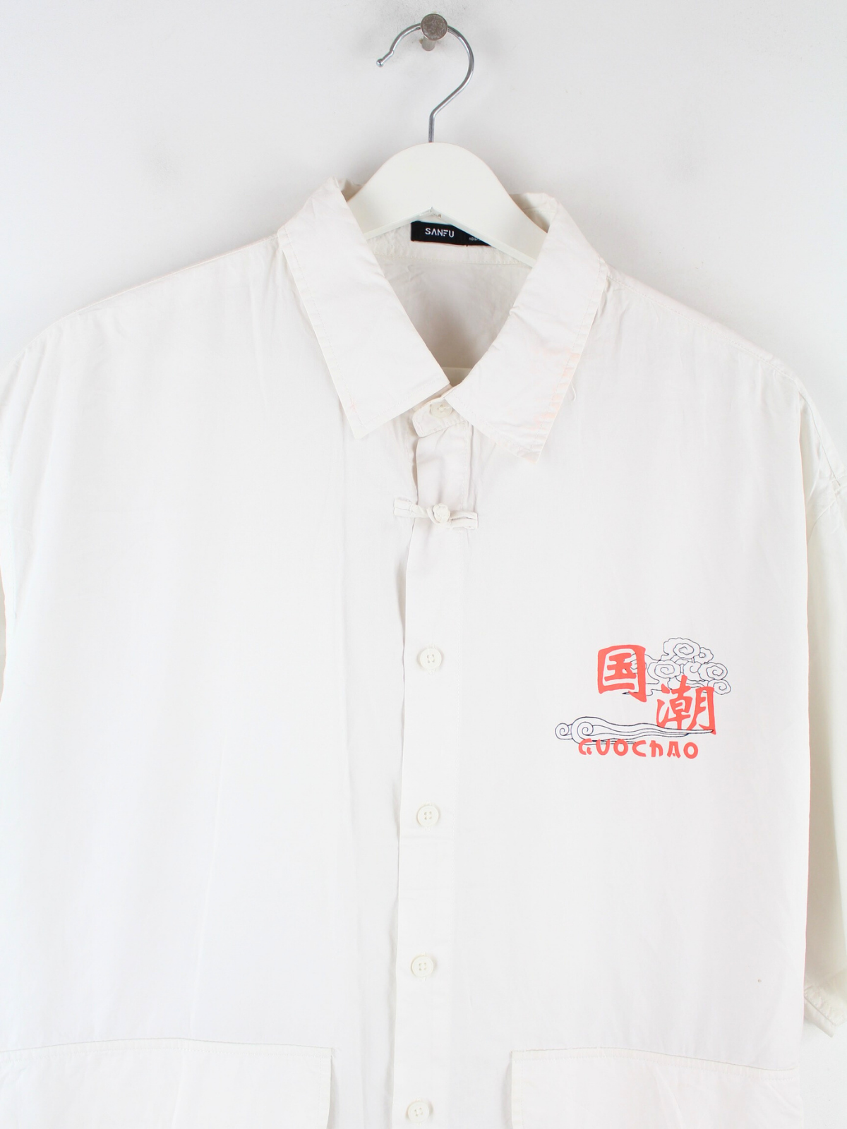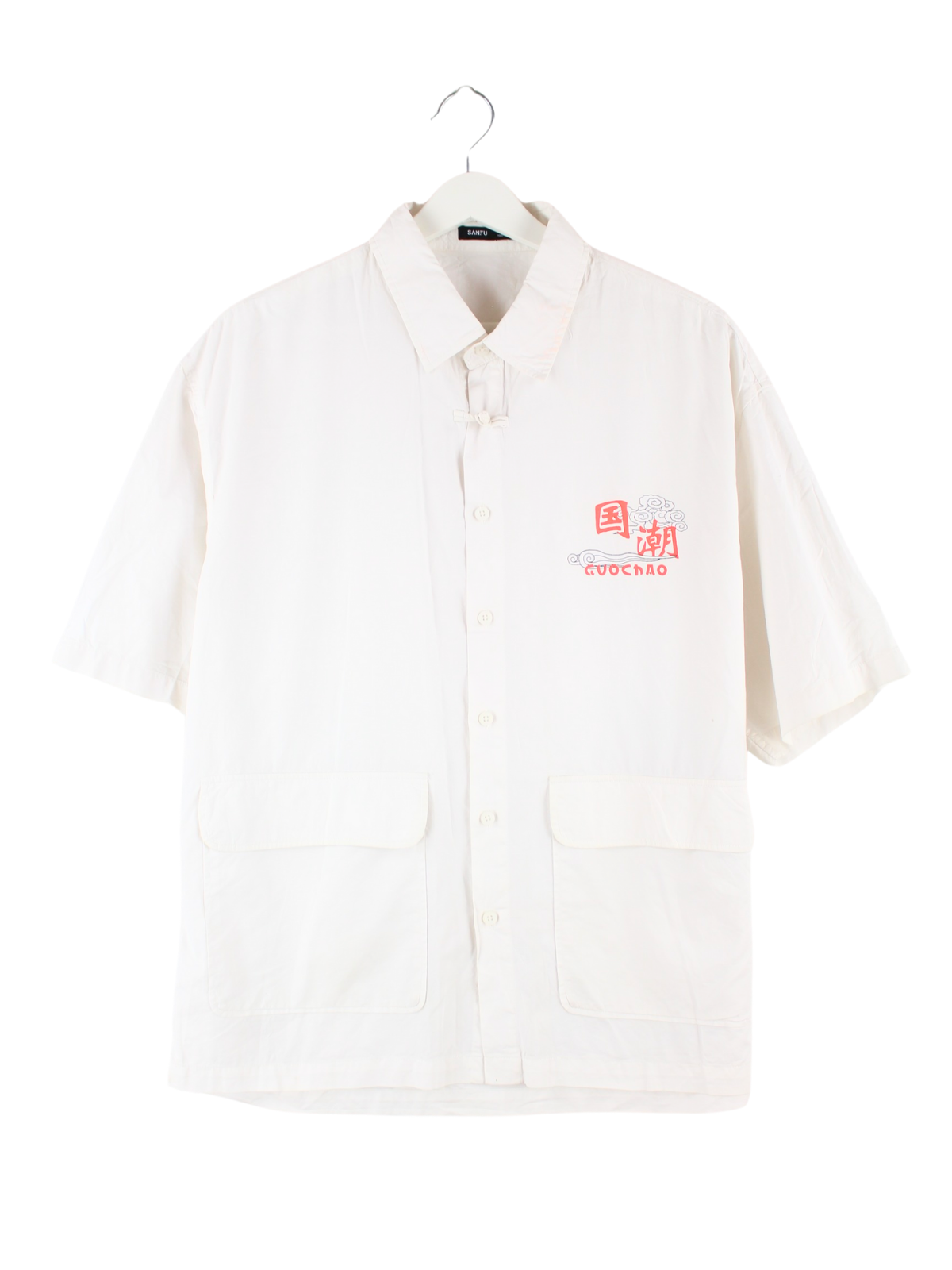 Vintage Freizeit Hemd in Größe XL aus den 90'ern. Es ist aus Baumwolle hergestellt und in Weiß im Angebot.