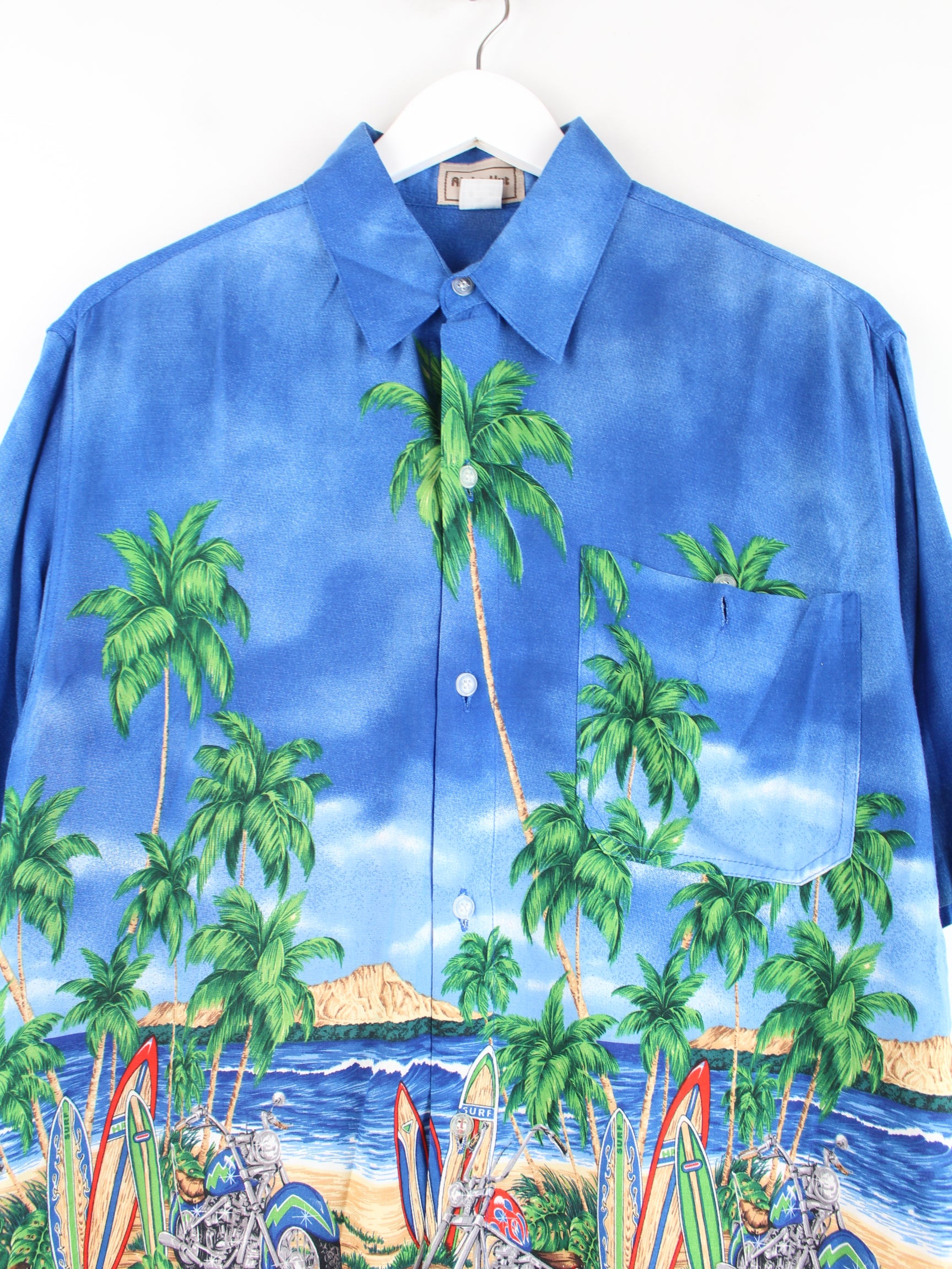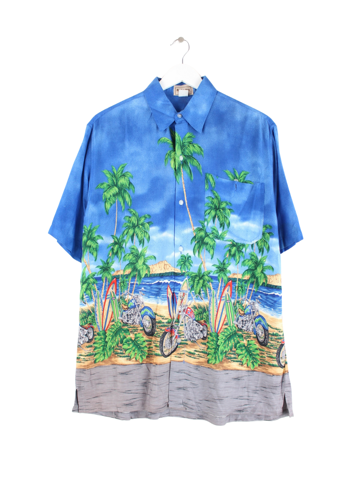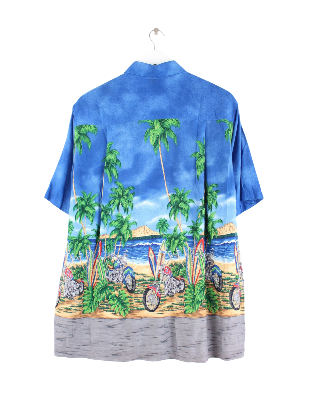 Vintage 90s Hawaii Motocycle & Surfing Motive Hemd Blau M