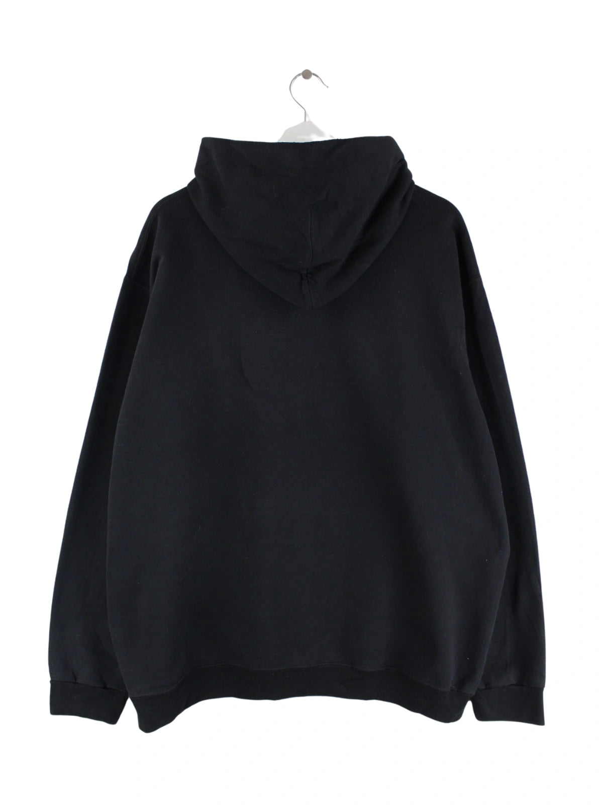 Schwarzer Vintage Hoodie aus den 90'ern in Größe XL. Er ist aus einer Baumwollmischung produziert und in gutem Zustand lieferbar. Mit schönem IOWA Print.