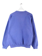 Blauer Vintage Sweater mit Stickereien aus den 90'ern in Größe L. Er ist aus einer Baumwollmischung gemacht und in gutem Zustand bei uns zu bekommen.