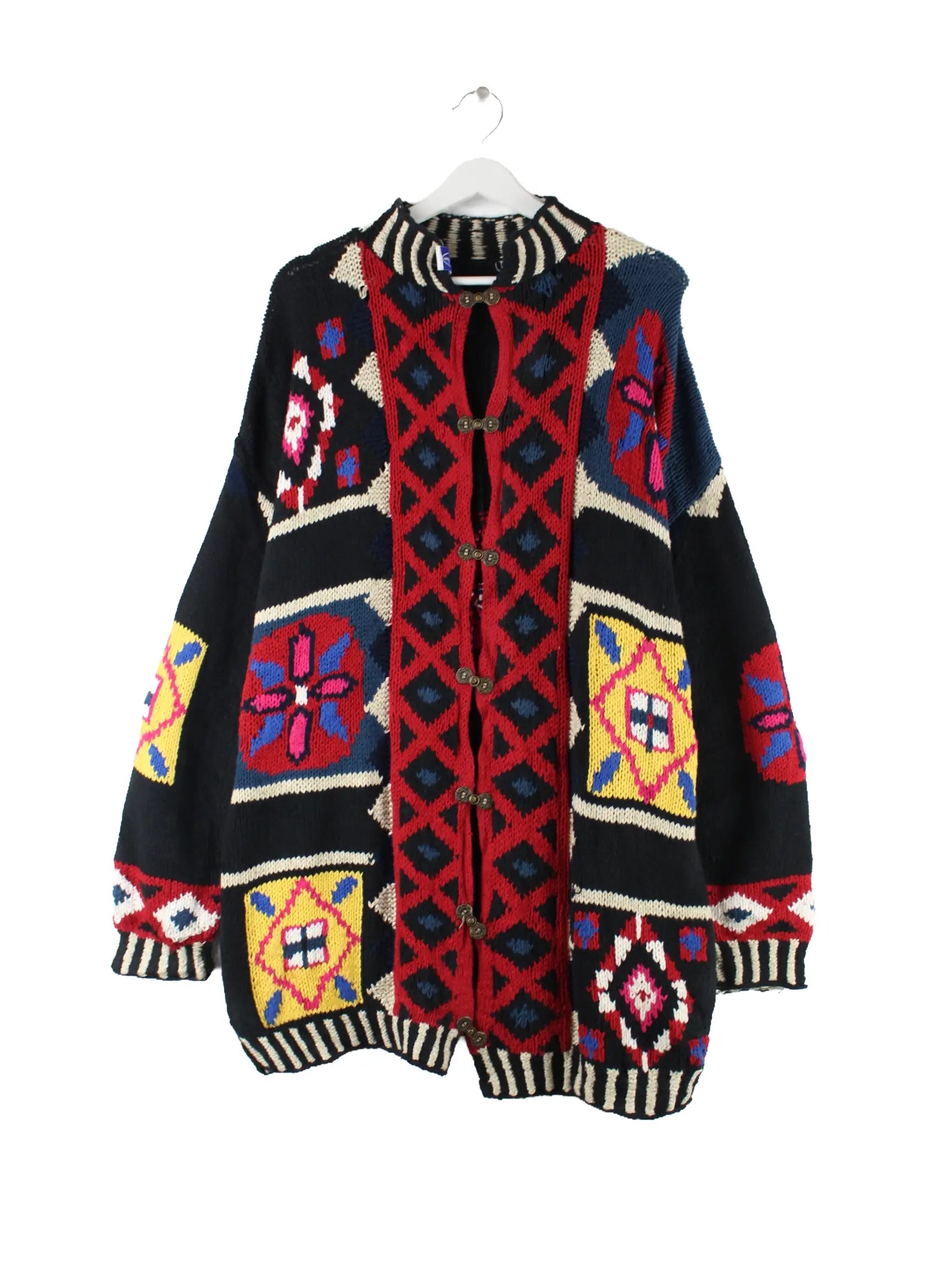 Vintage 90s Long Strickjacke Mehrfarbig L