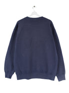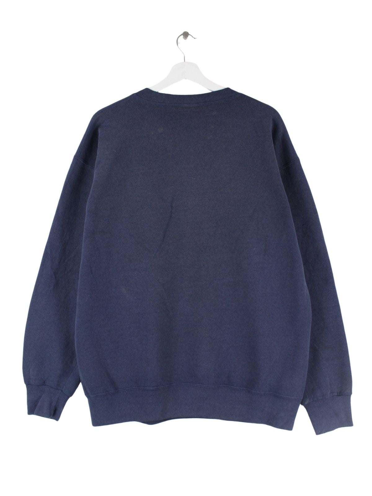 Vintage Sweater in Größe L aus den 90'ern. Er ist aus einer Baumwollmischung angefertigt und in Blau bei uns zu bekommen. Mit seltenem Michigan Print.