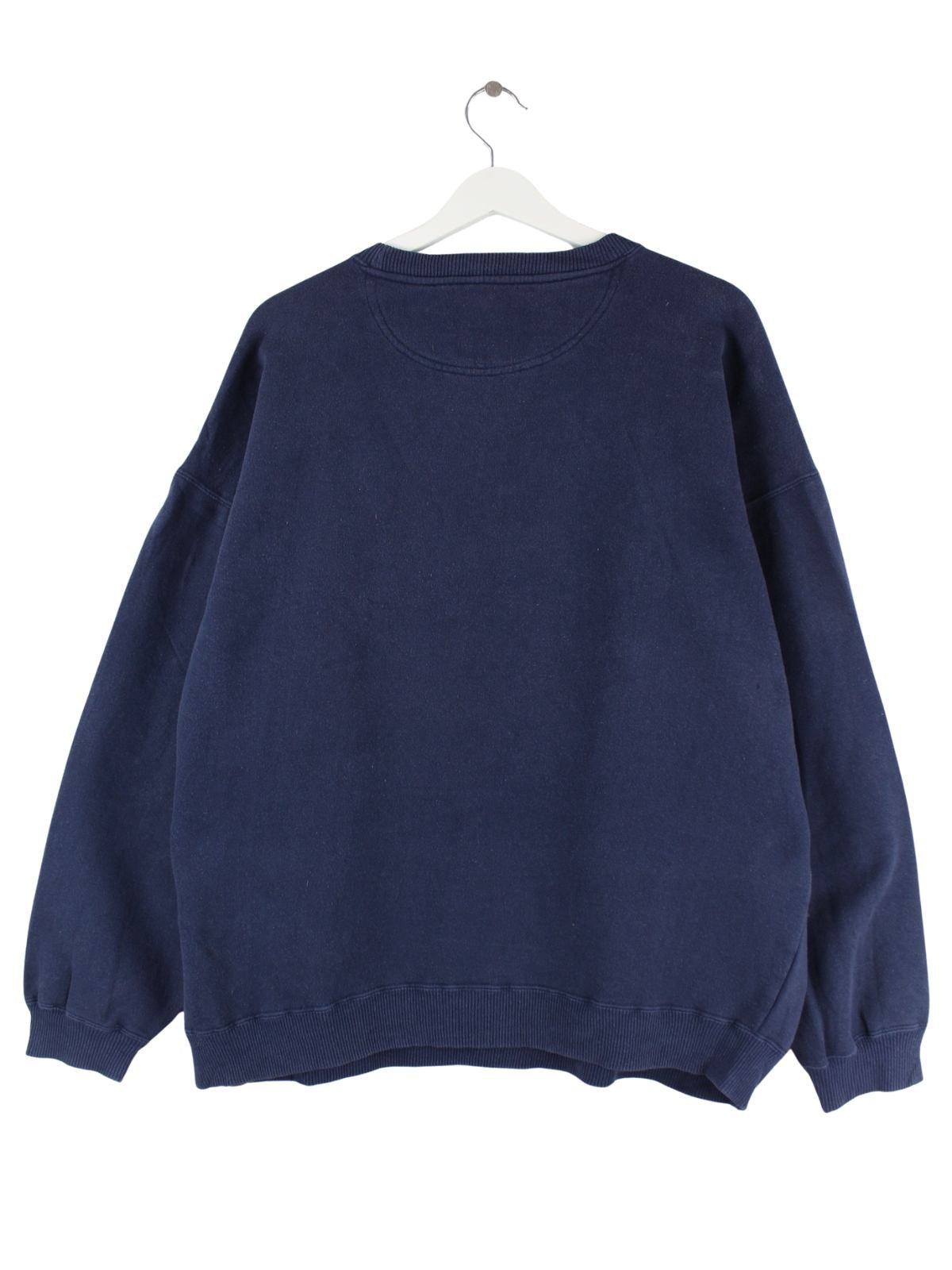 Vintage Sweater mit Stick in Größe L aus den 90'ern. Er ist aus einer Baumwollmischung produziert und in Blau bei uns vorrätig.