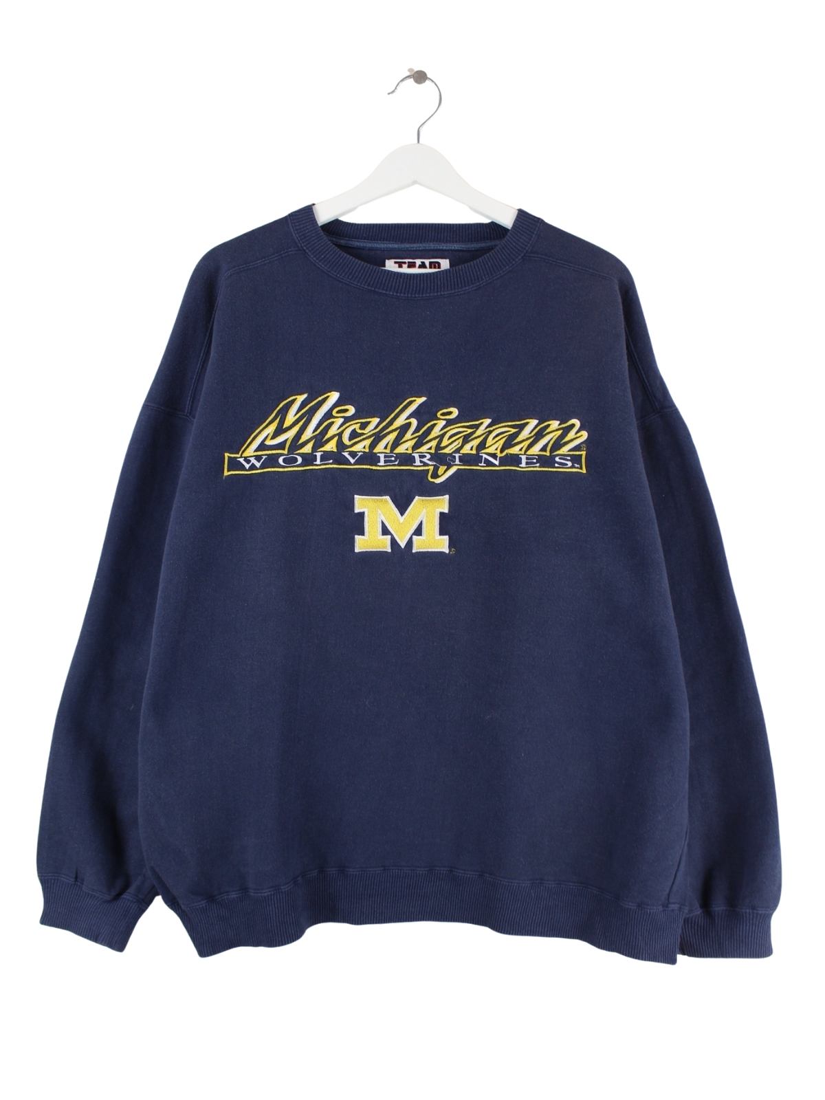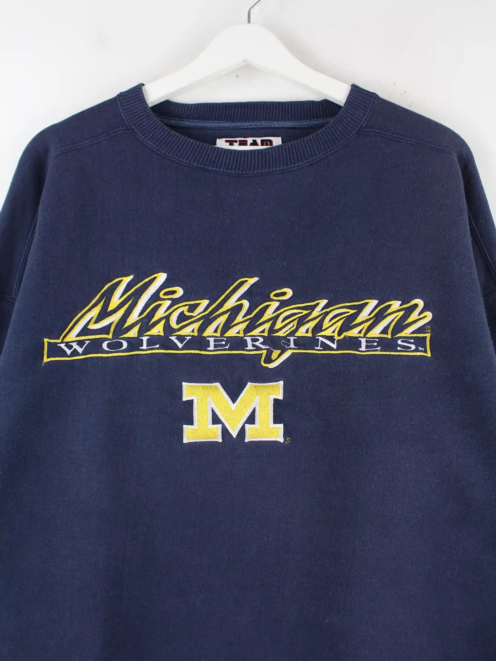 Vintage 90s Michigan Wolverines Embroidered Sweater Blau L