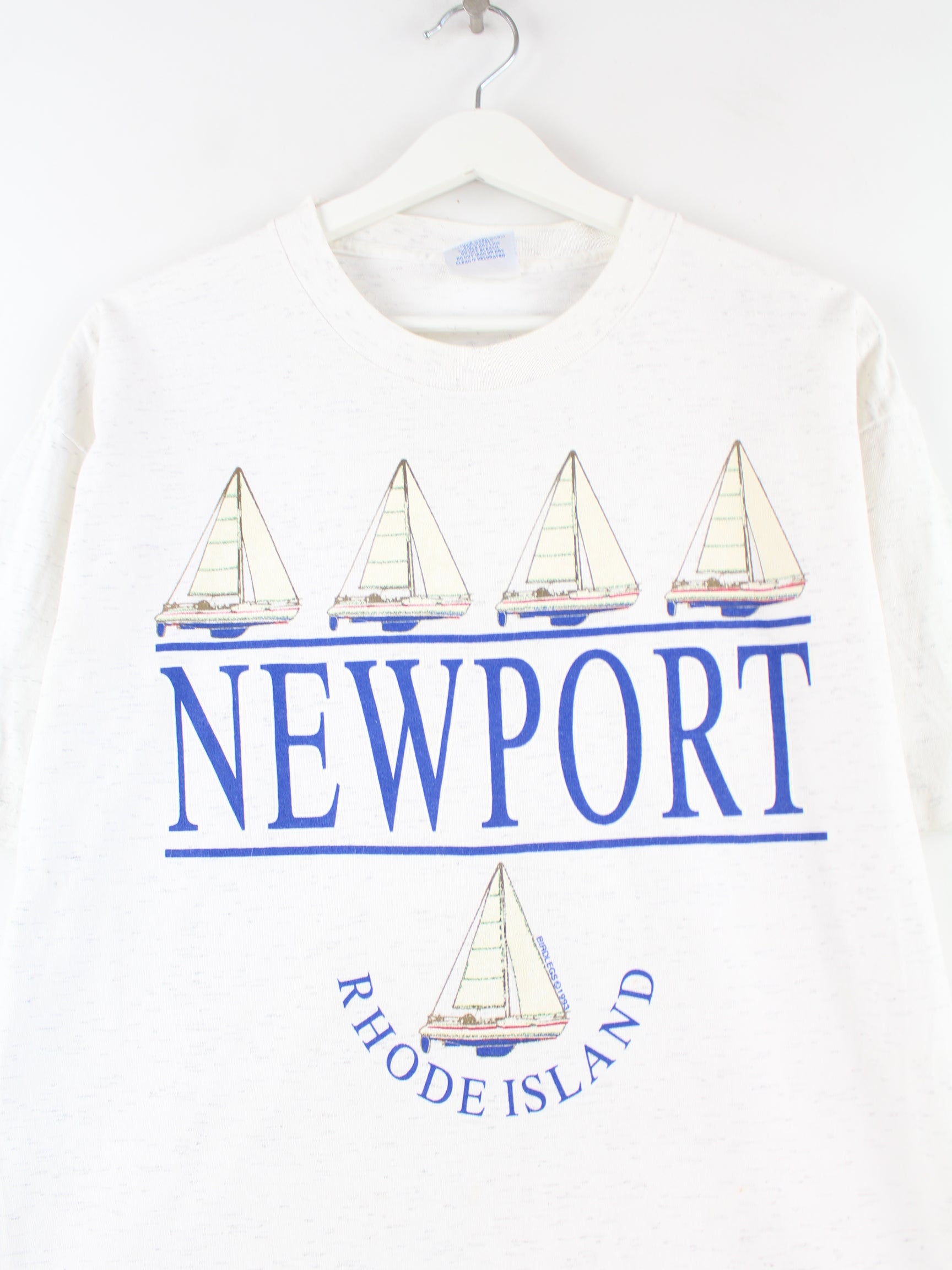 Vintage 90s New Port Print Single Stitch T-Shirt Weiß L