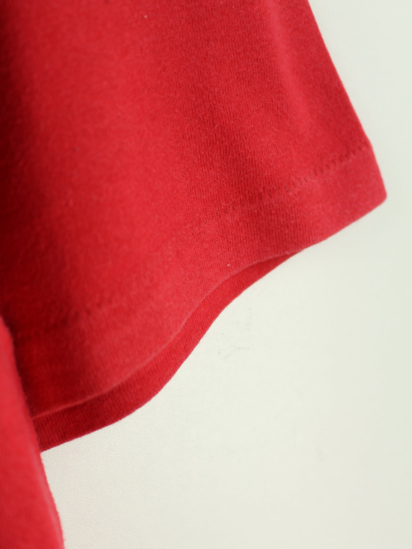 Vintage T-Shirt in Größe XL aus den 90'ern. Es ist aus einer Baumwollmischung hergestellt und in Rot zu bekommen. Mit seltenem Field Print.